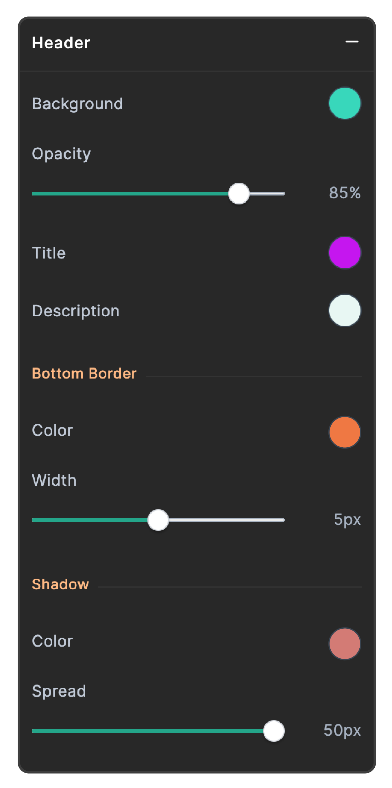 Width: Adjust the thickness of the bottom border using a pixel slider. - Shadow: This creates a shadow effect for the header container.