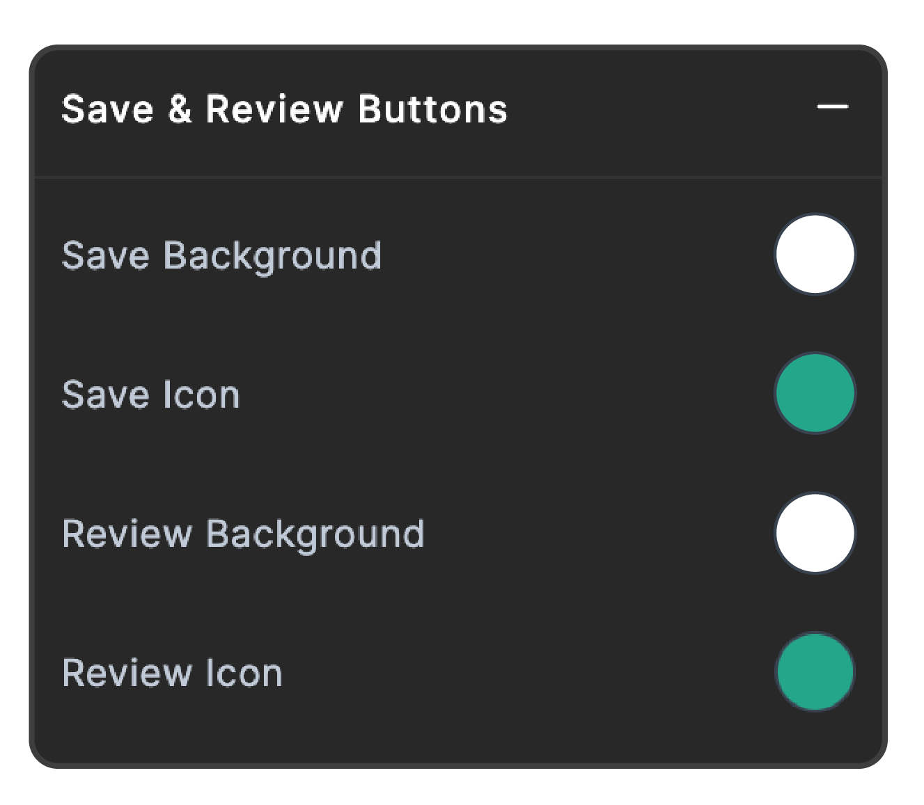 - Previous Button: Set a color for the background, text, and border for the Previous button.
