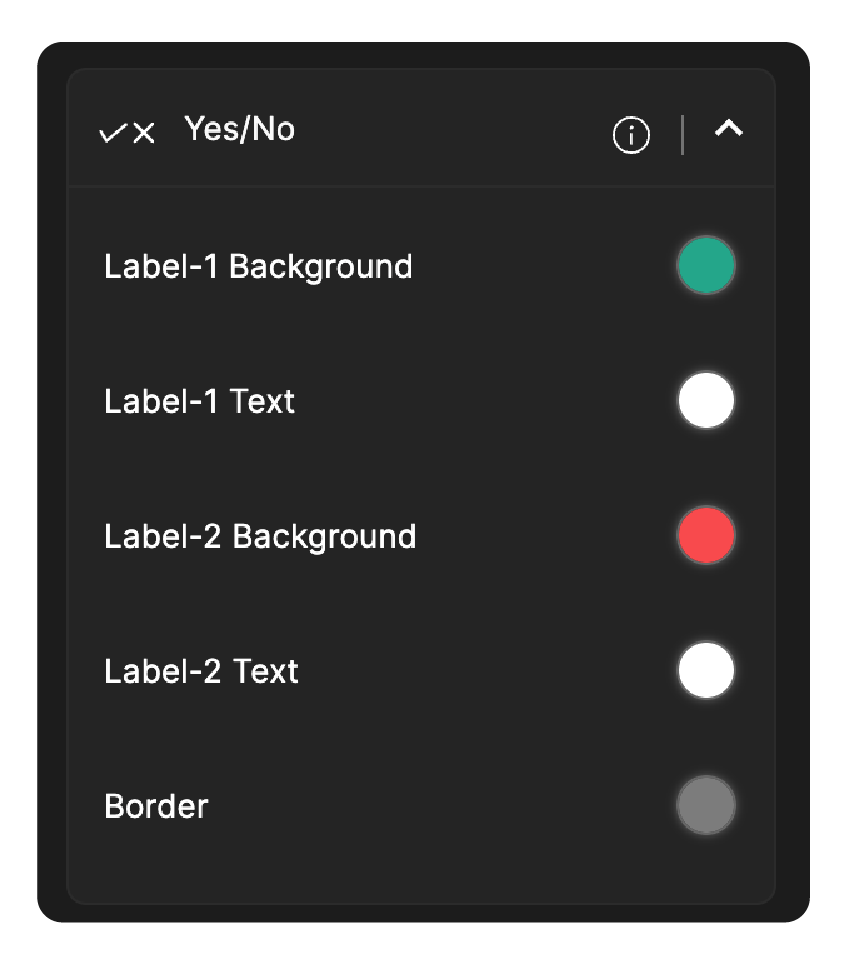 Label-1 Text: Sets the text color of Label-1 in Default style (toggle) and icon color in Styles 2 and 3 ( like/dislike & checkmark/cross).