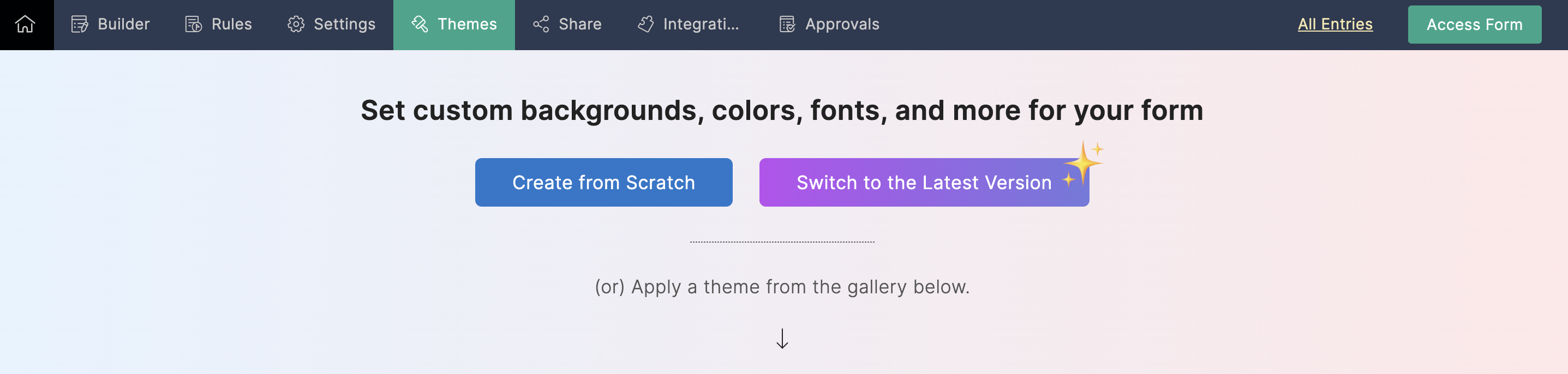 After building the form, navigate to the Themes tab.