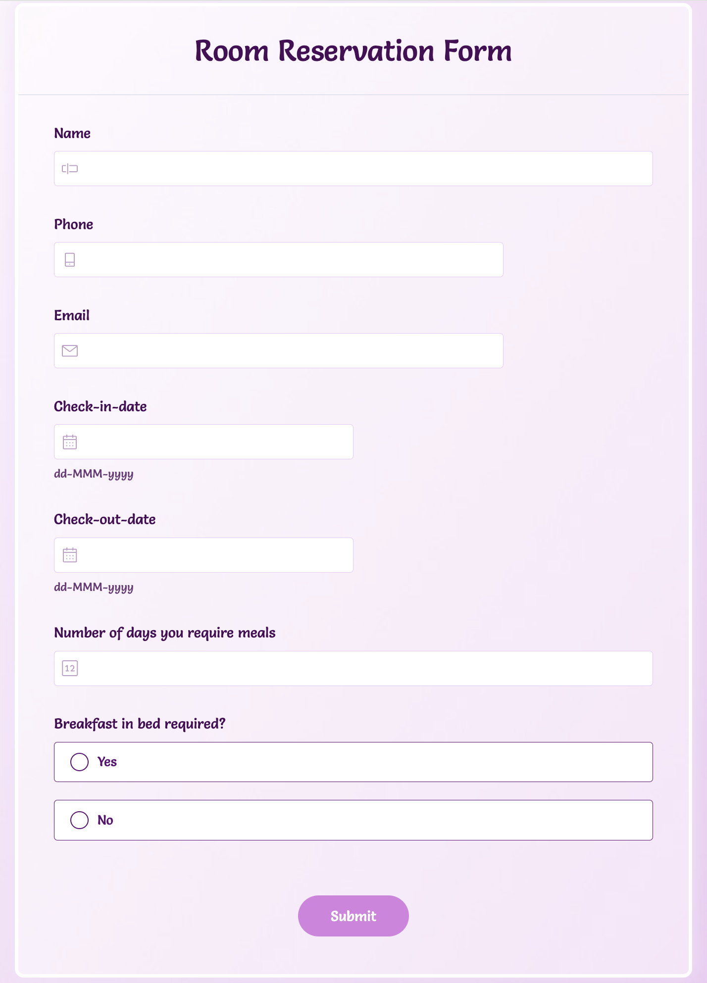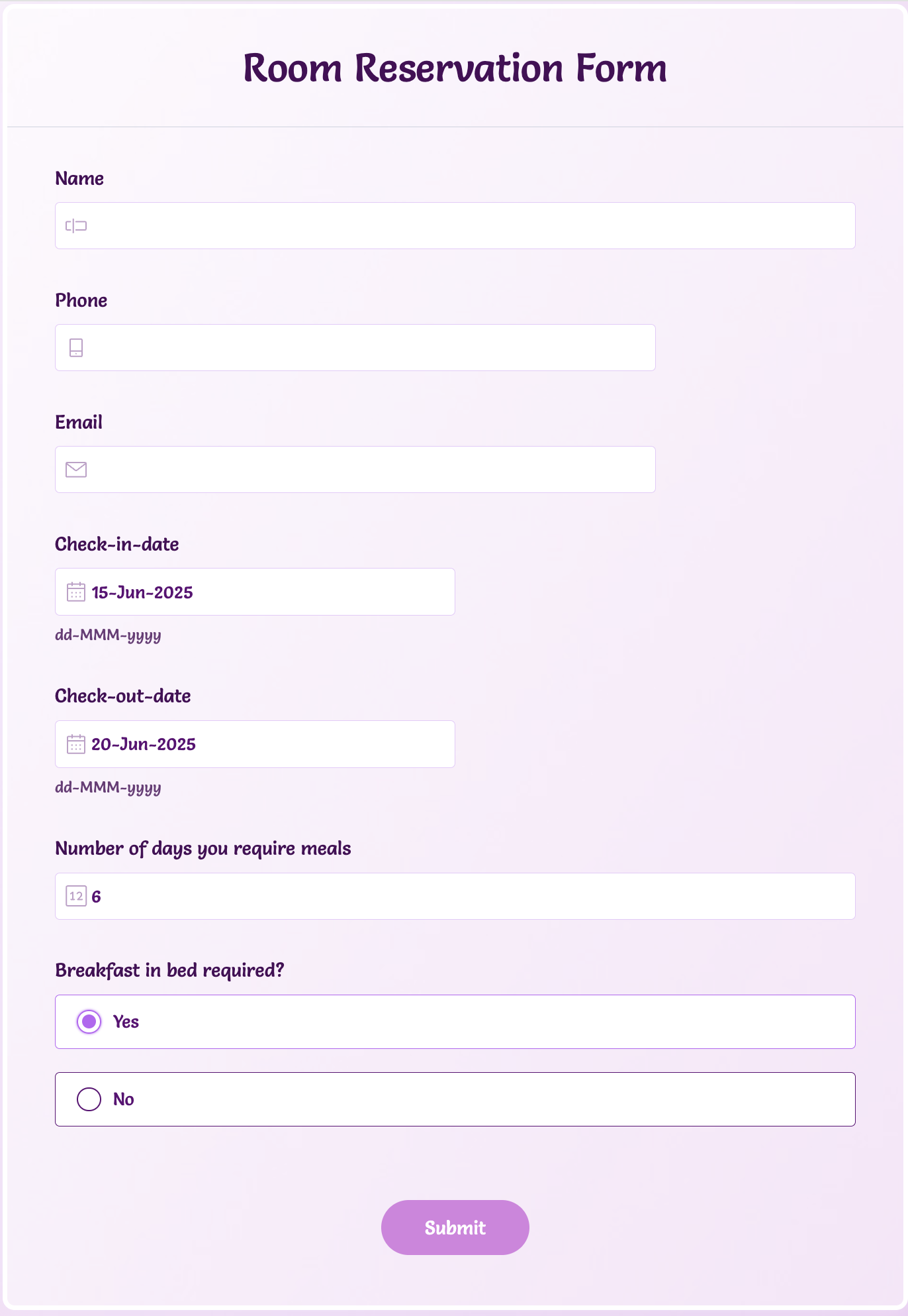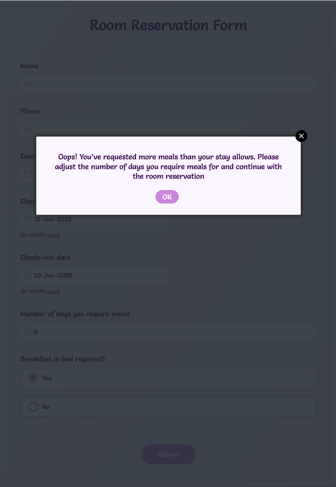 If the respondent enters a number of meal days that exceeds their stay duration, the form will automatically deny submission.
