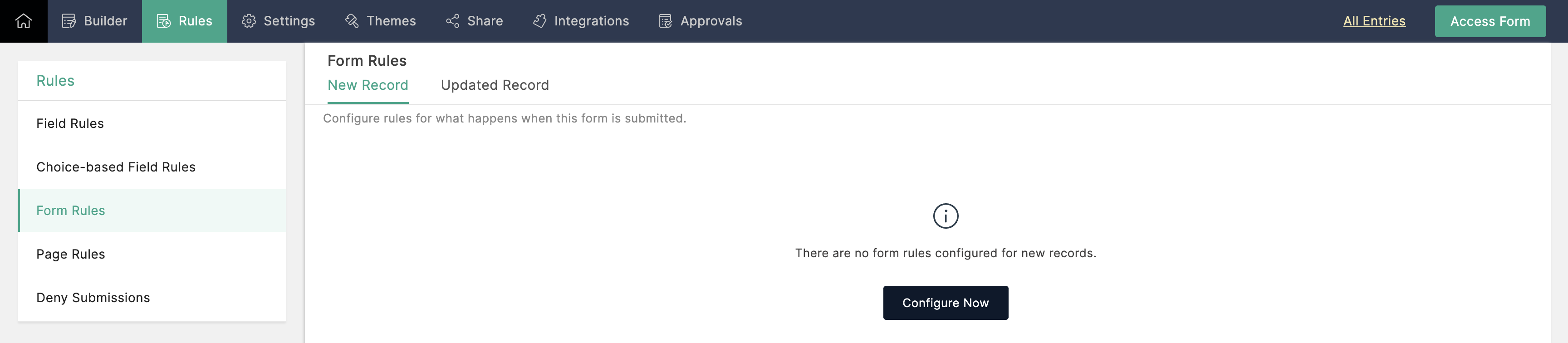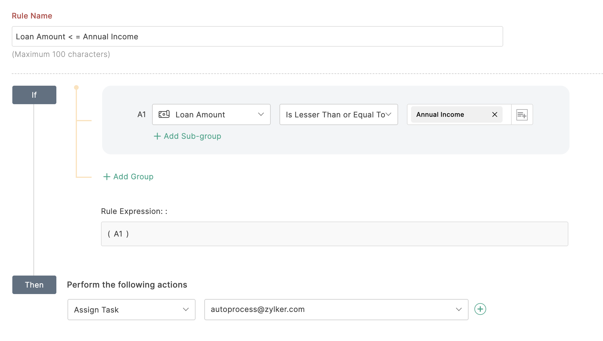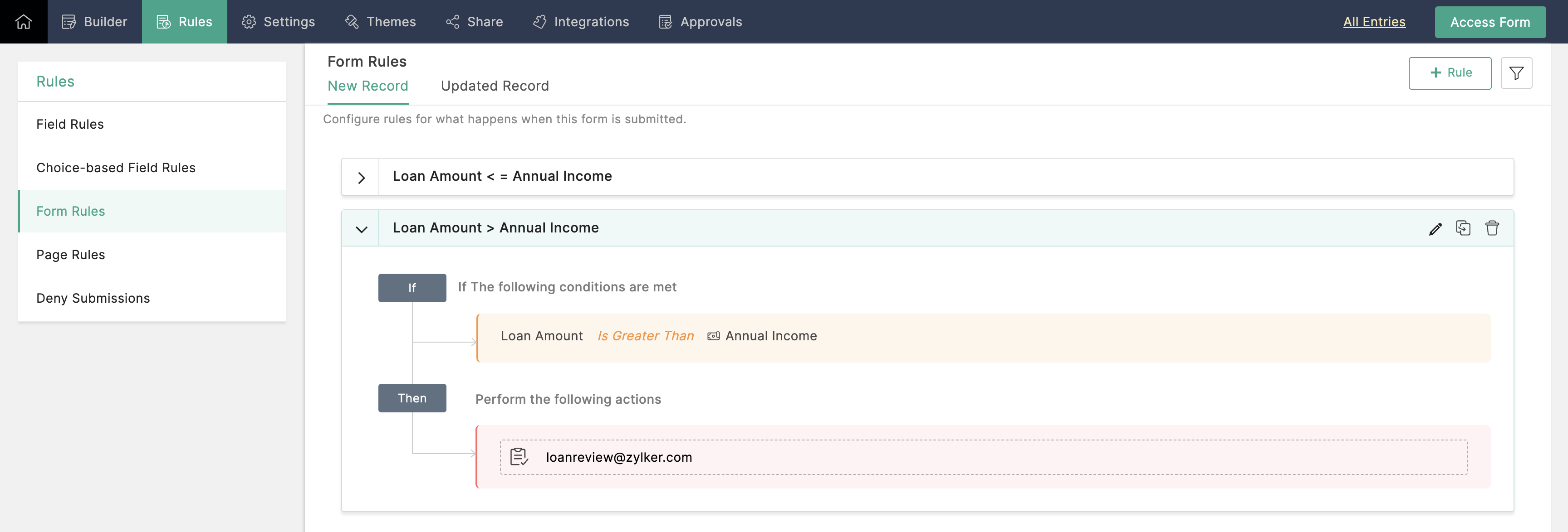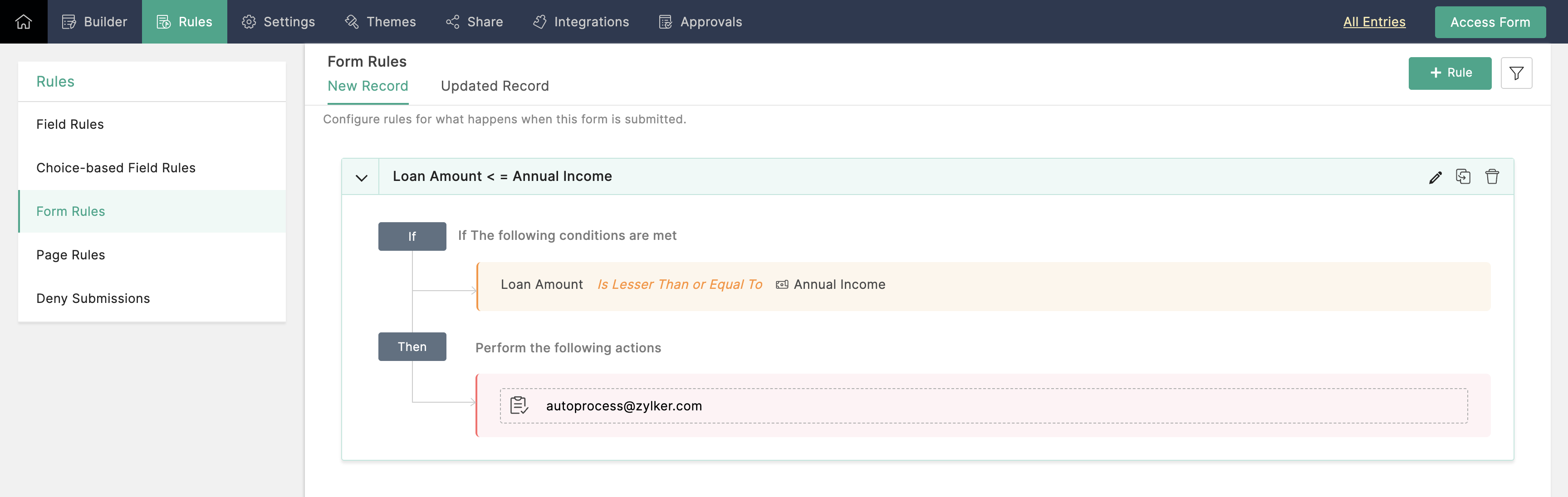 To auto-assign tasks based on the above conditions, we configure Form Rules using conditional logic.
