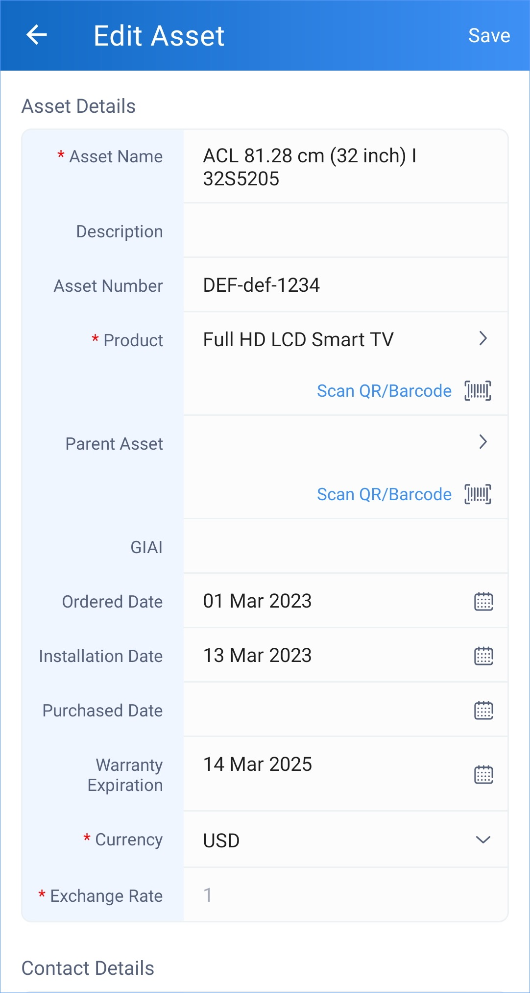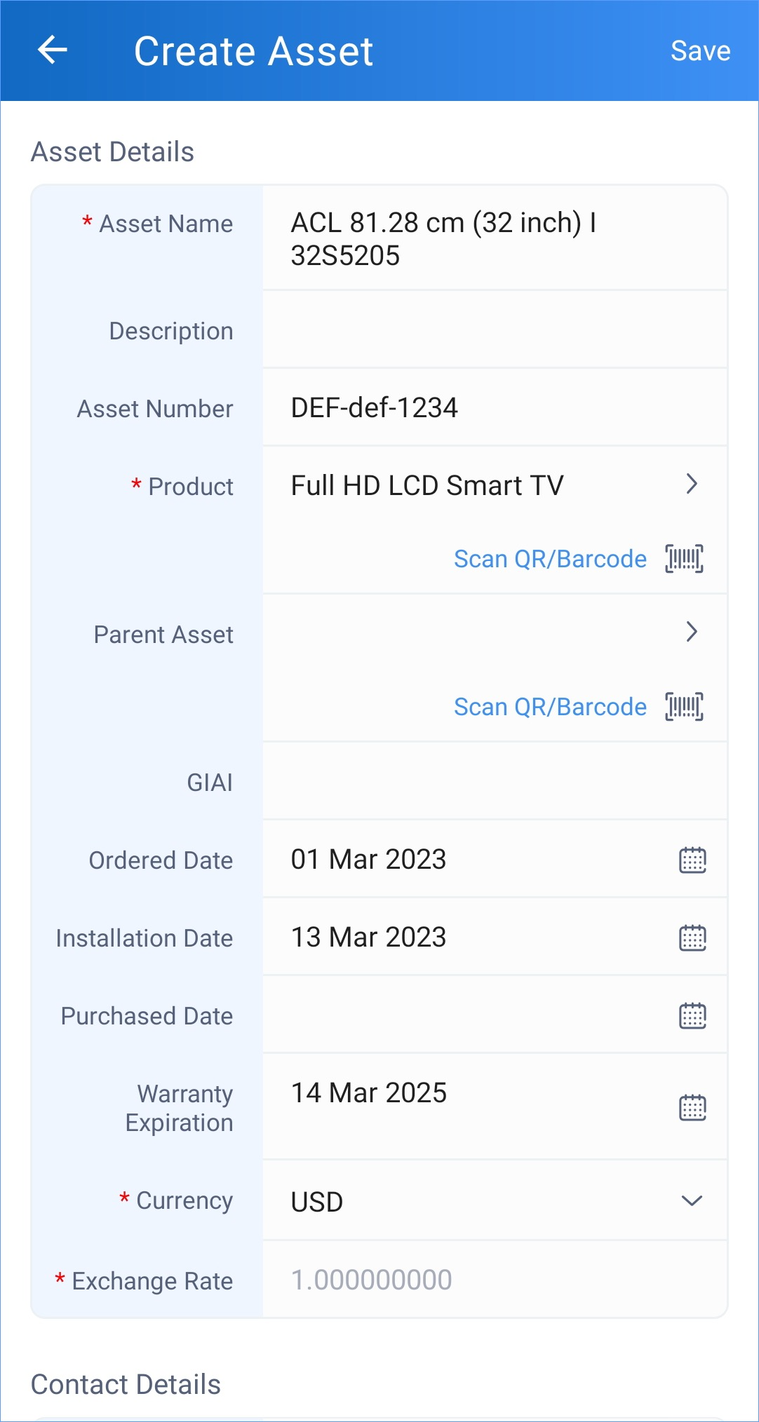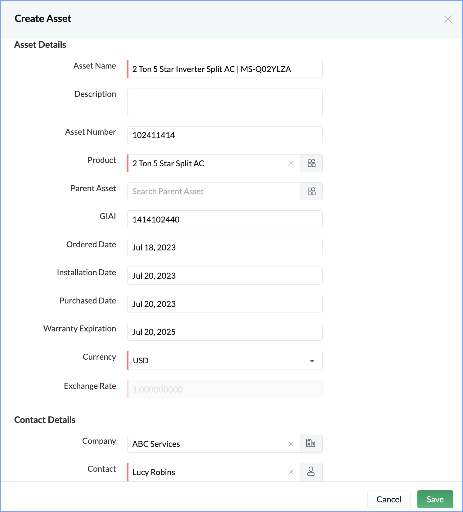An Asset refers to a part instance that has been sold to customers and is now owned by them. Consider a company selling air conditioners. To provide after-sales support like warranty service or repairs, they would need to keep track of their sold products. With the Assets module, you can manage the assets associated with a customer and create work orders for these assets.