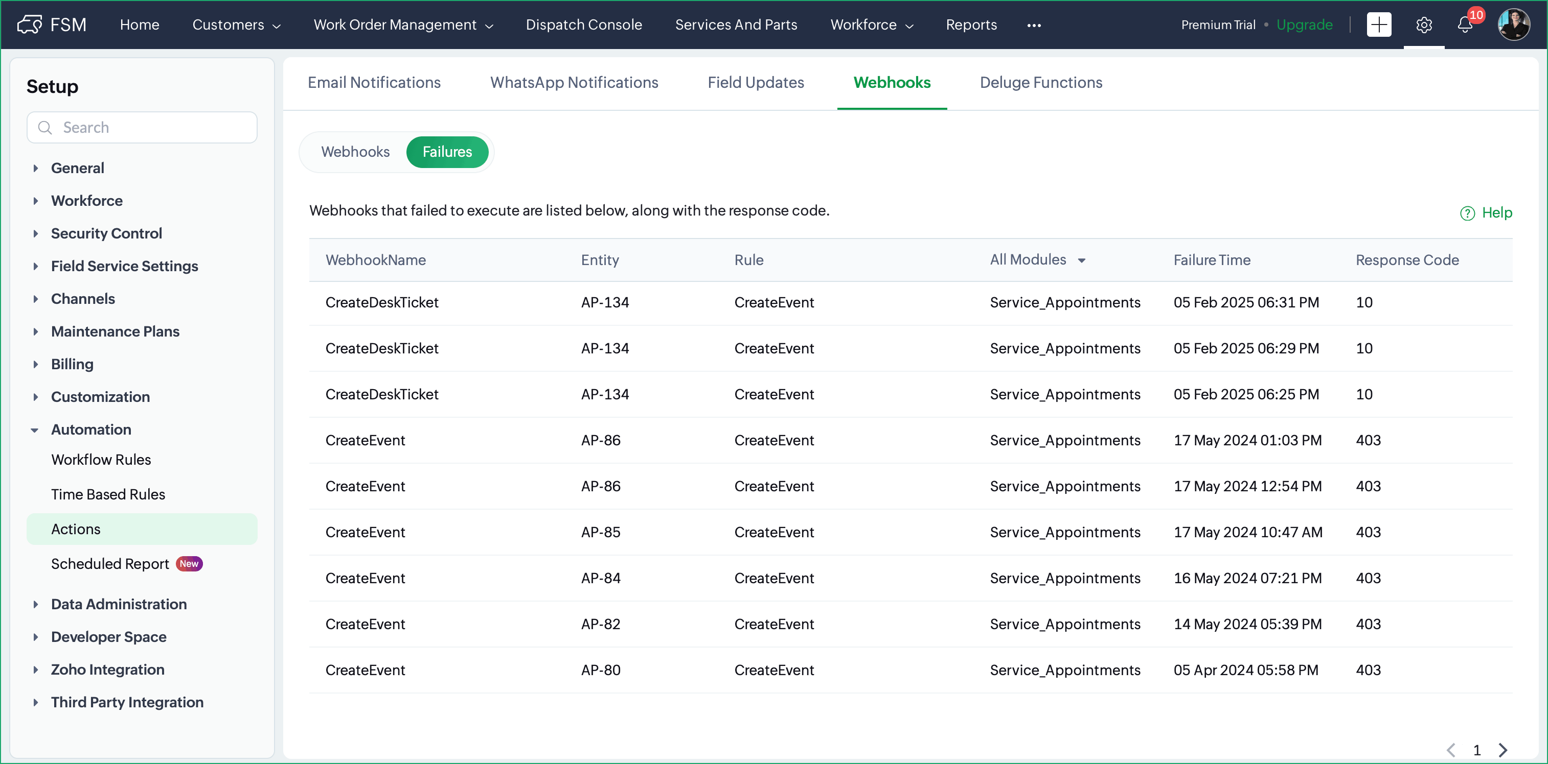 Module | Select a module whose information you want to use in the webhook. The supported modules are: