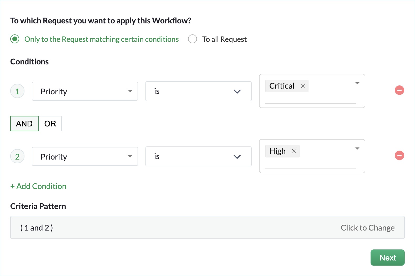 When you add more than one conditions you can specify whether you want to Execute the rule when any/all of the above criteria(s) are satisfied.