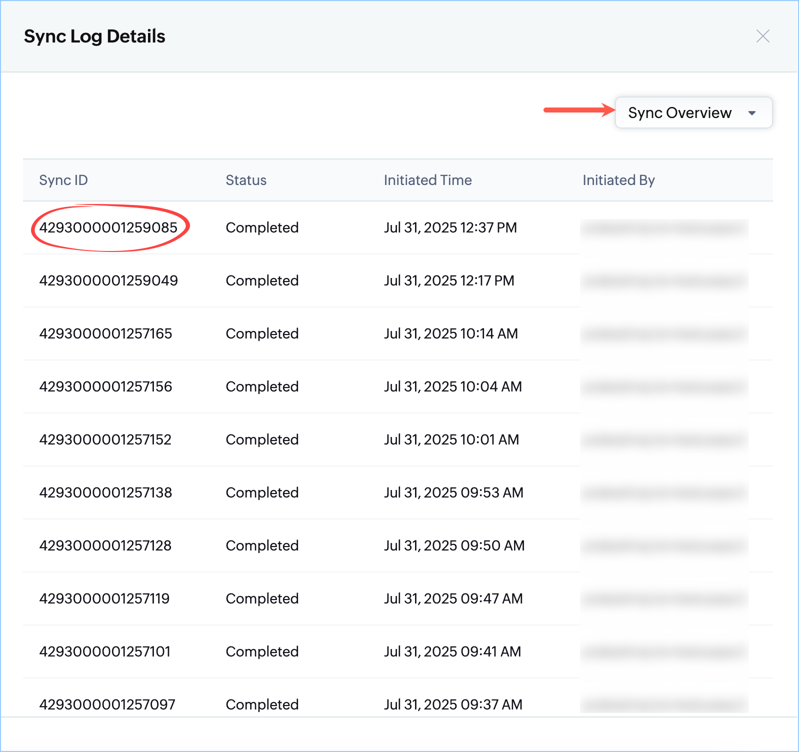 2. Sync Overview: Lists all sync logs.