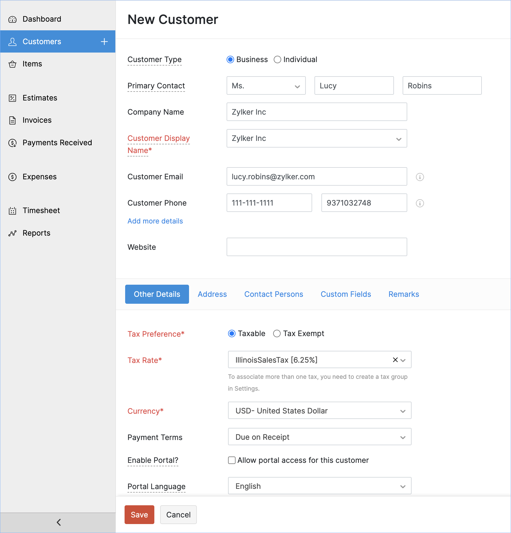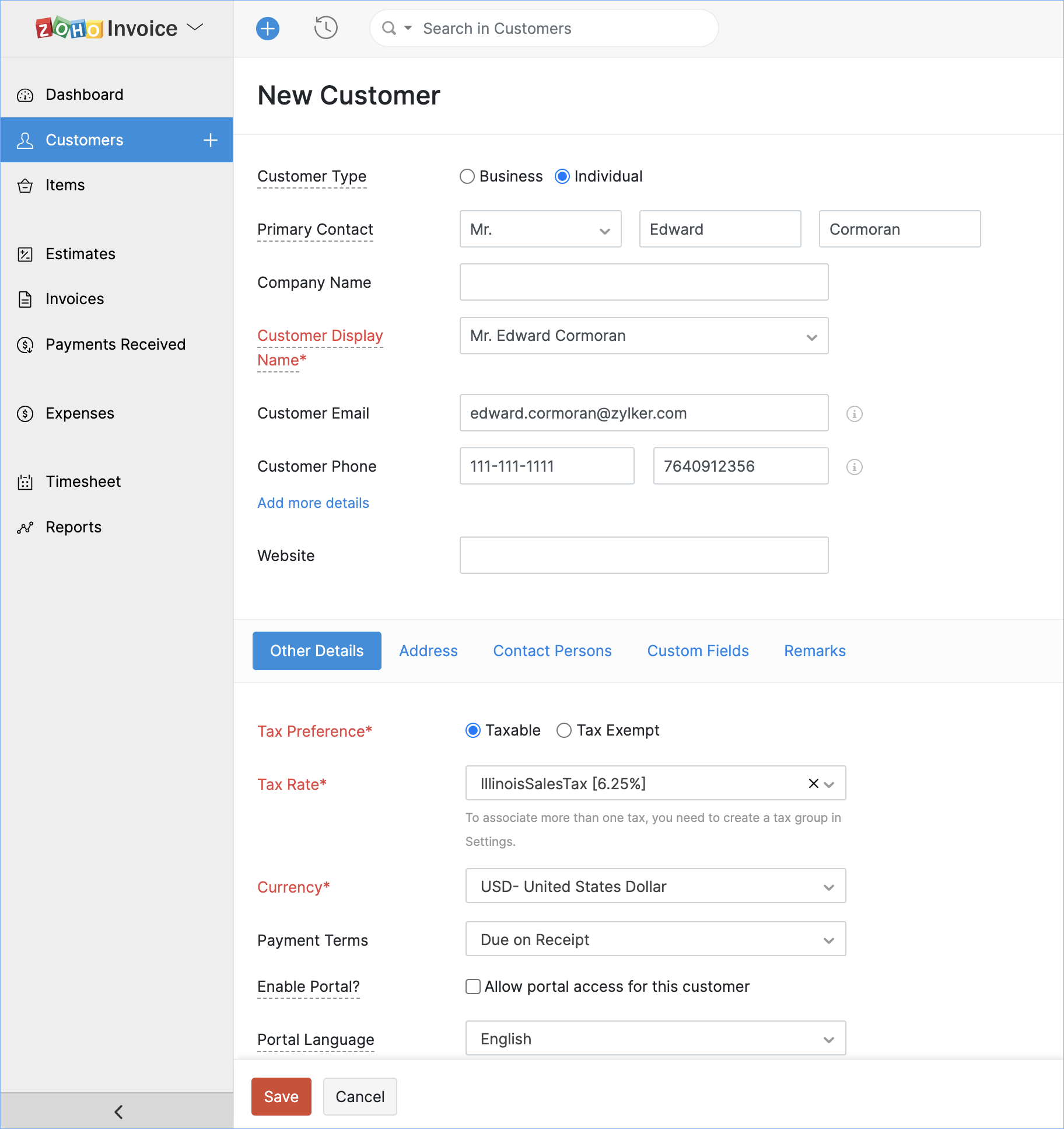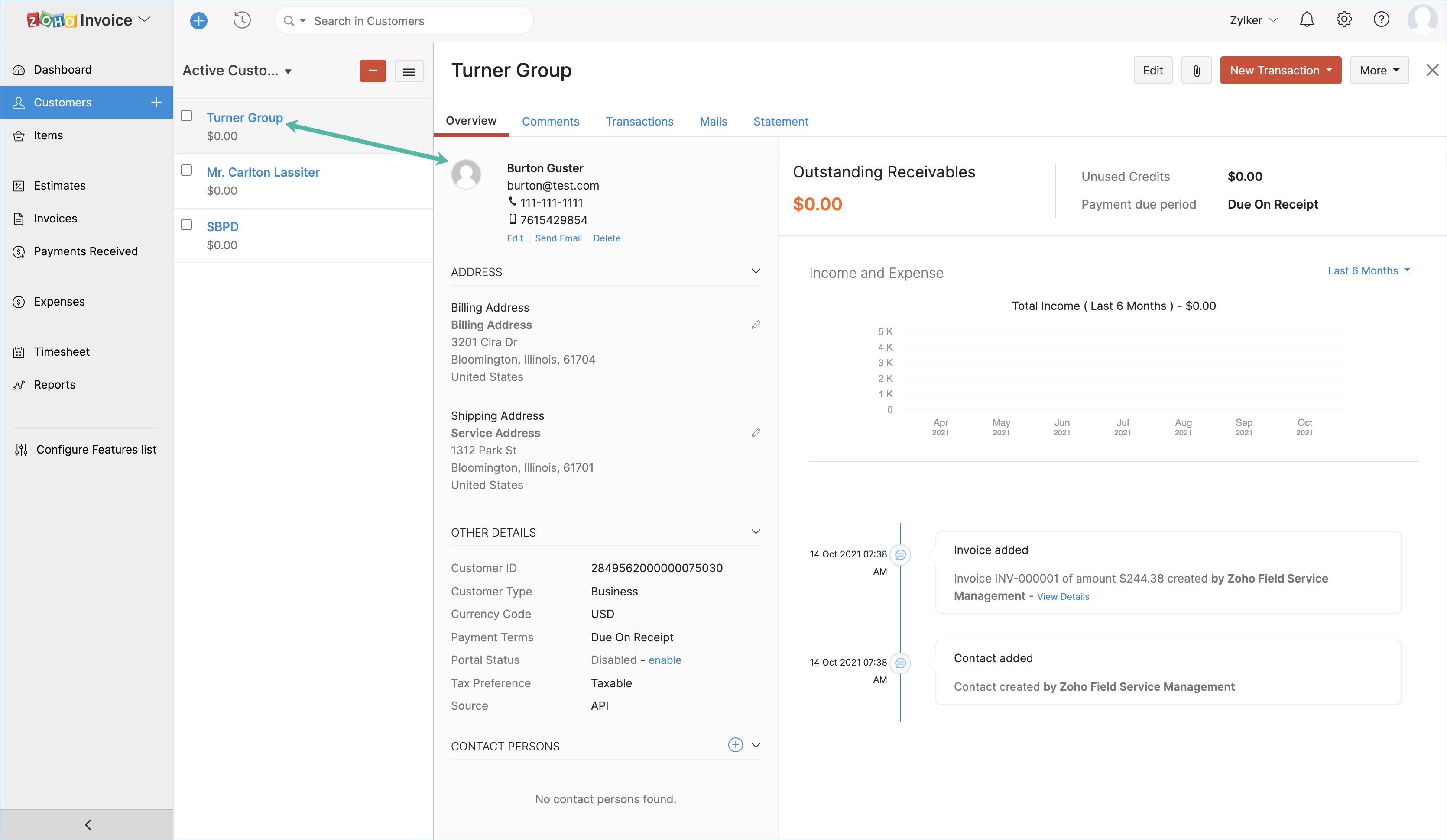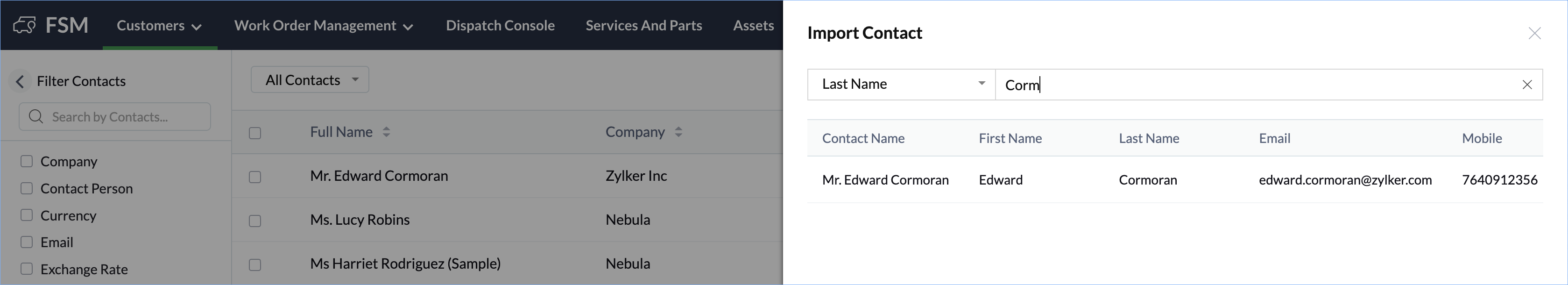 Type II | Map the Contacts module in Zoho FSM to the Customers module in Zoho Invoice/Books |