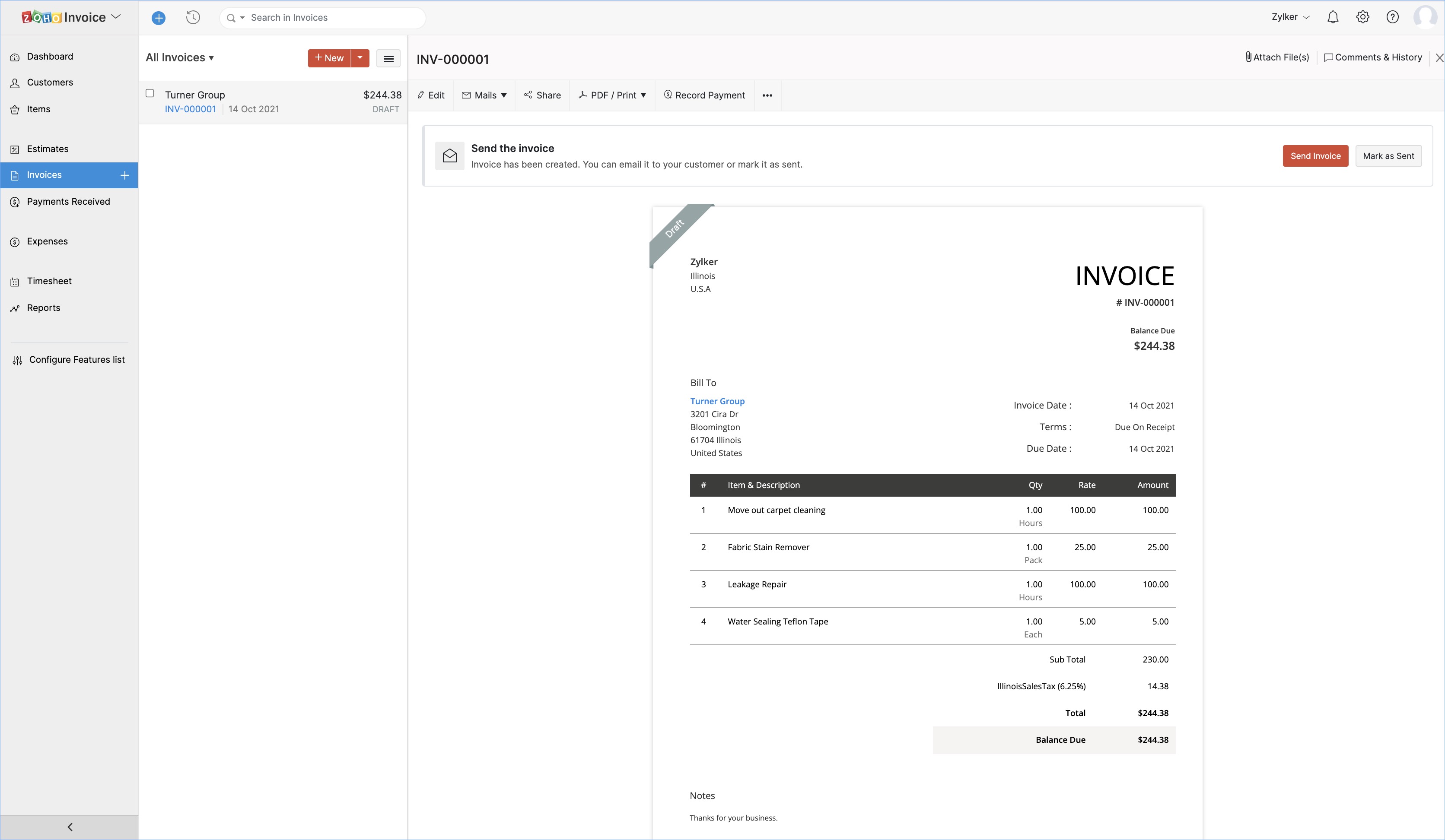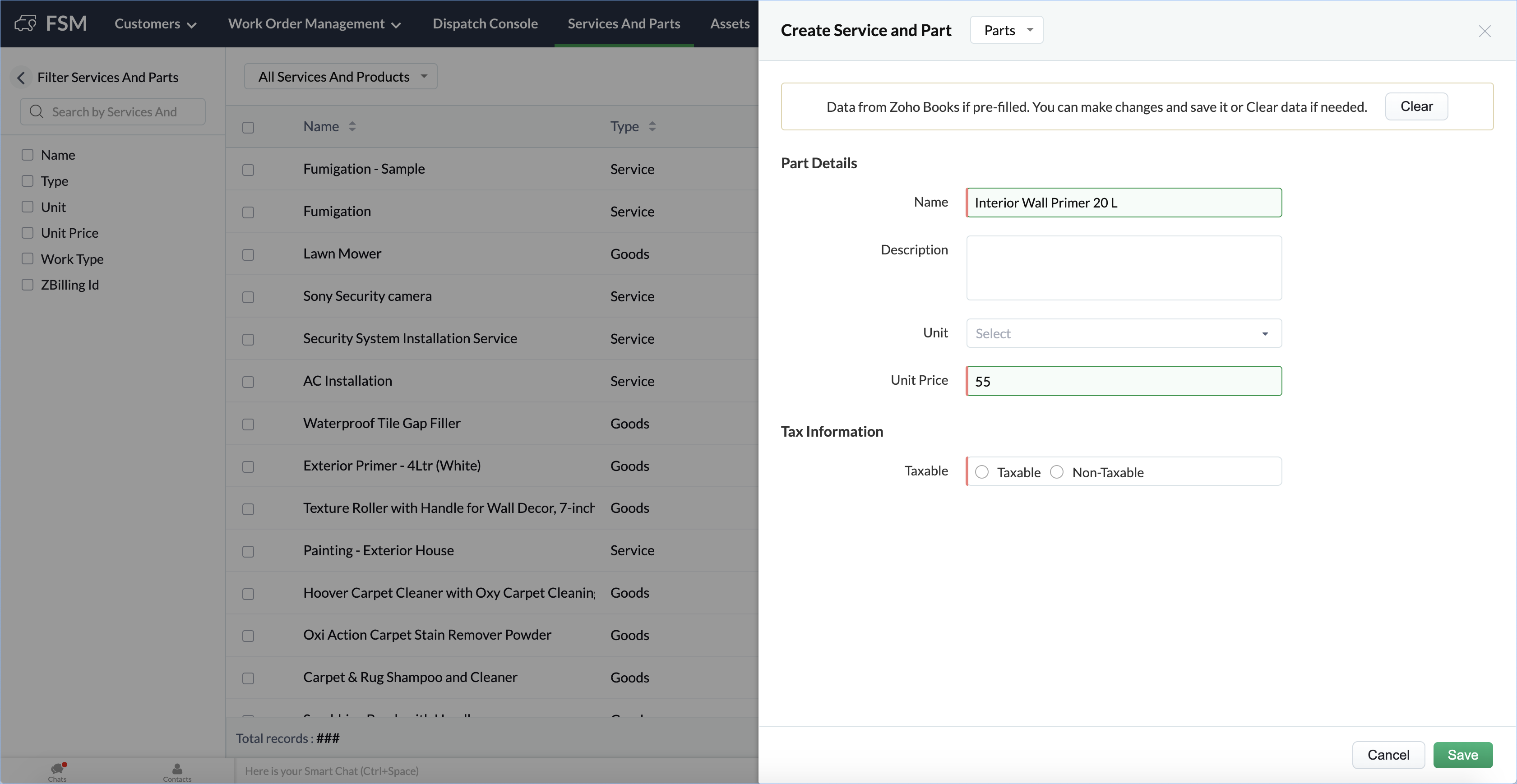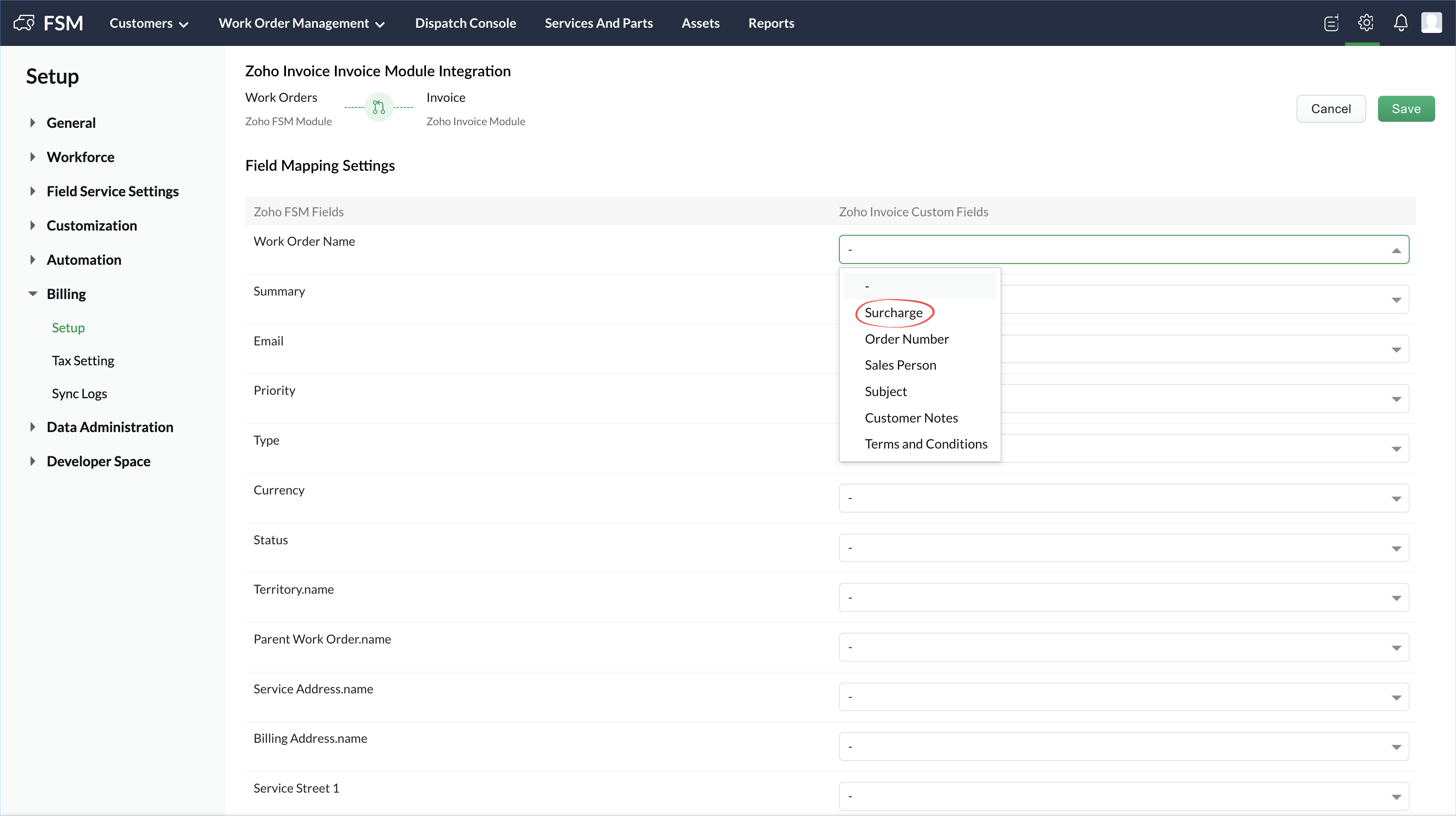 Zoho FSM Module | Zoho Invoice/Books Module |