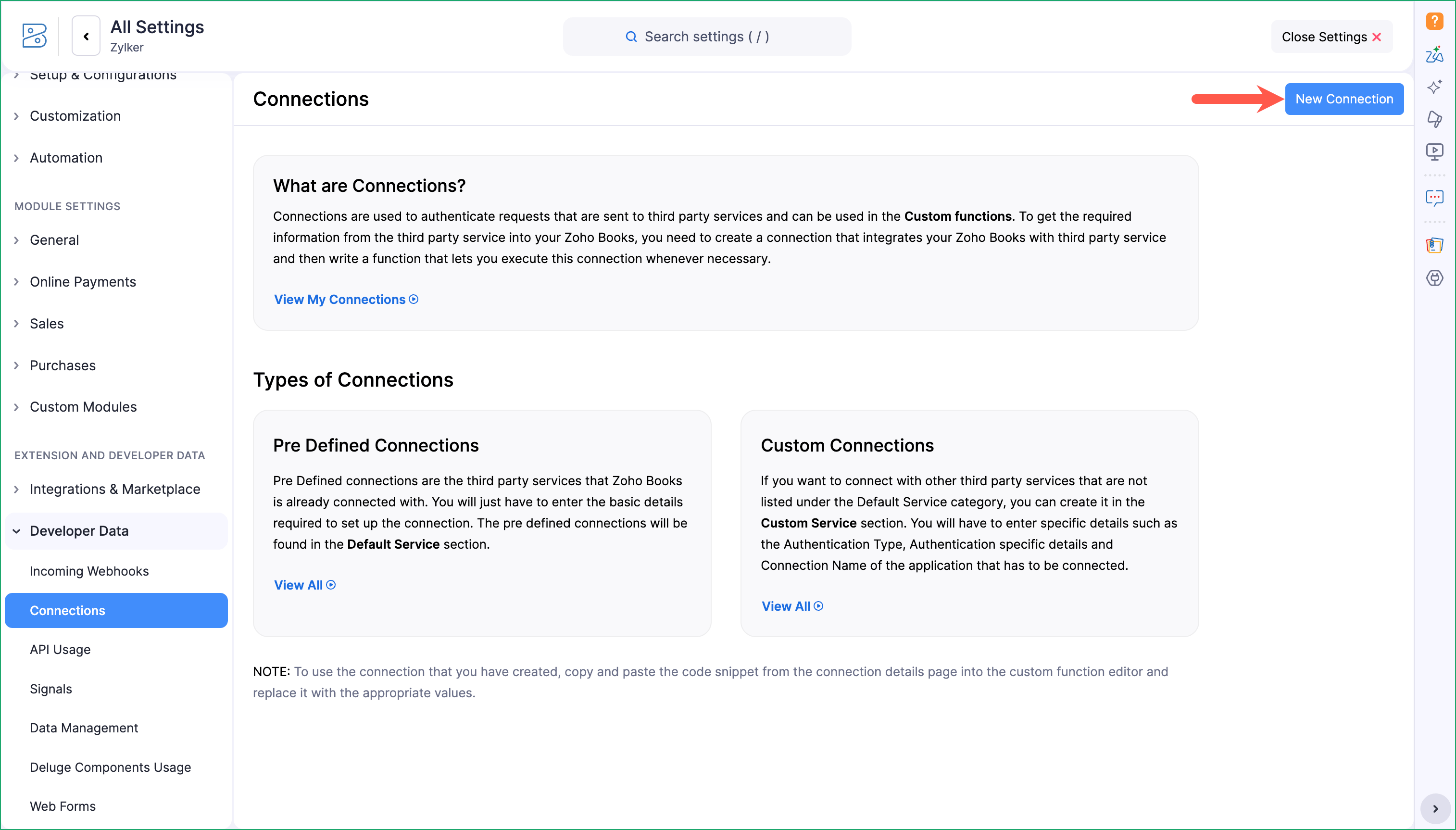 Step 1: Create a connection for Zoho FSM in Zoho Books