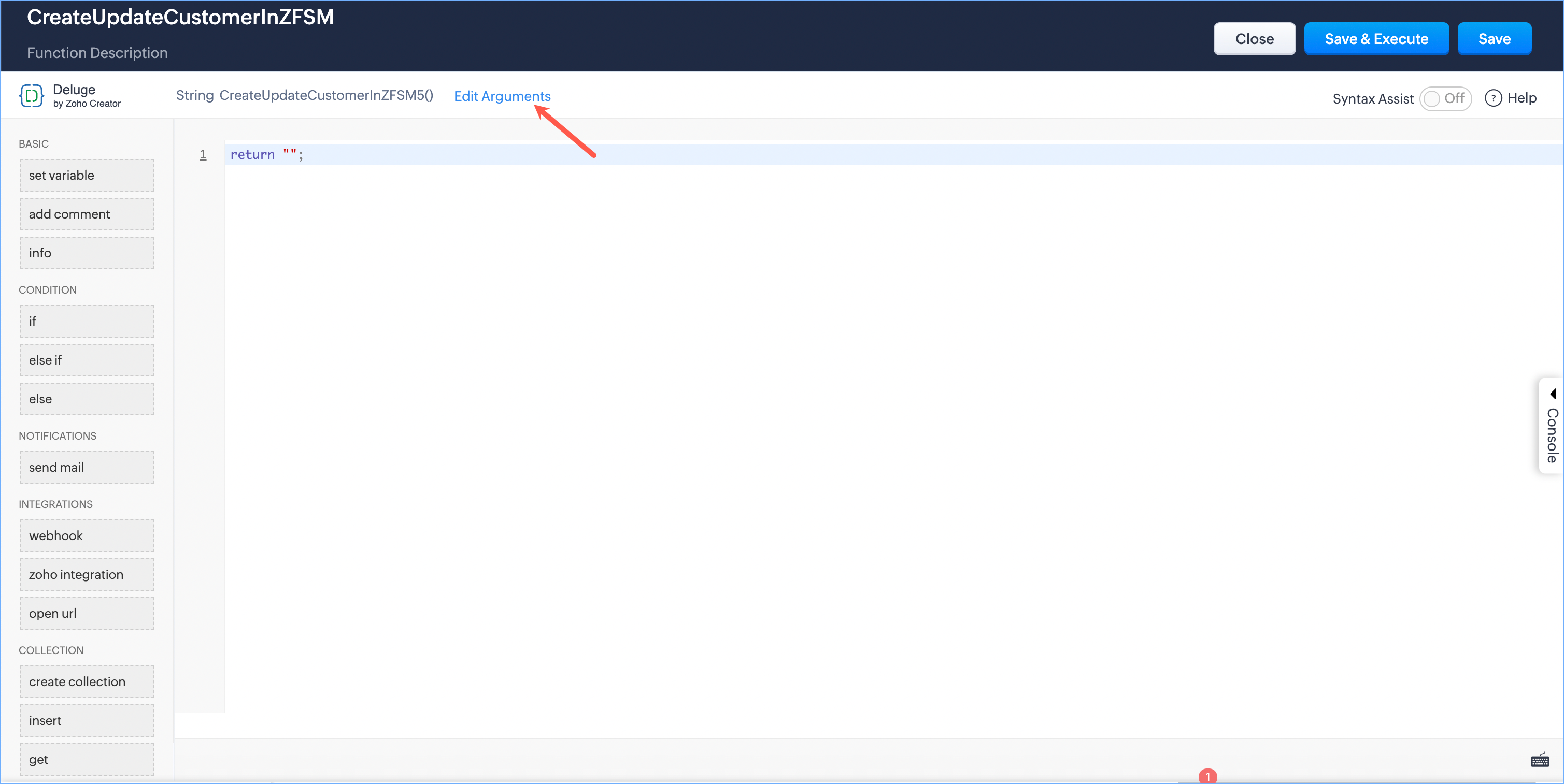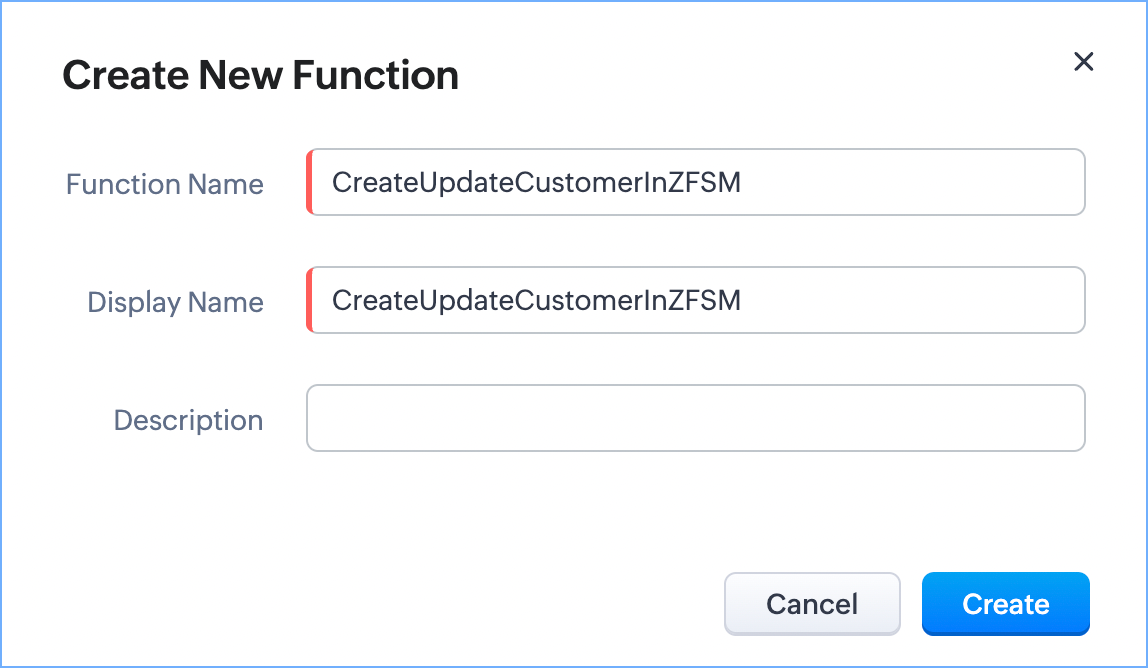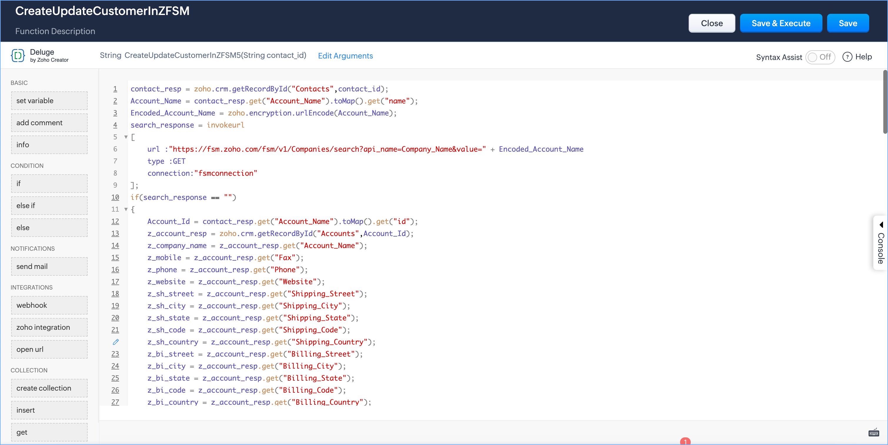 Follow similar steps to create a custom function that will add a CRM Account as Company in FSM. Use