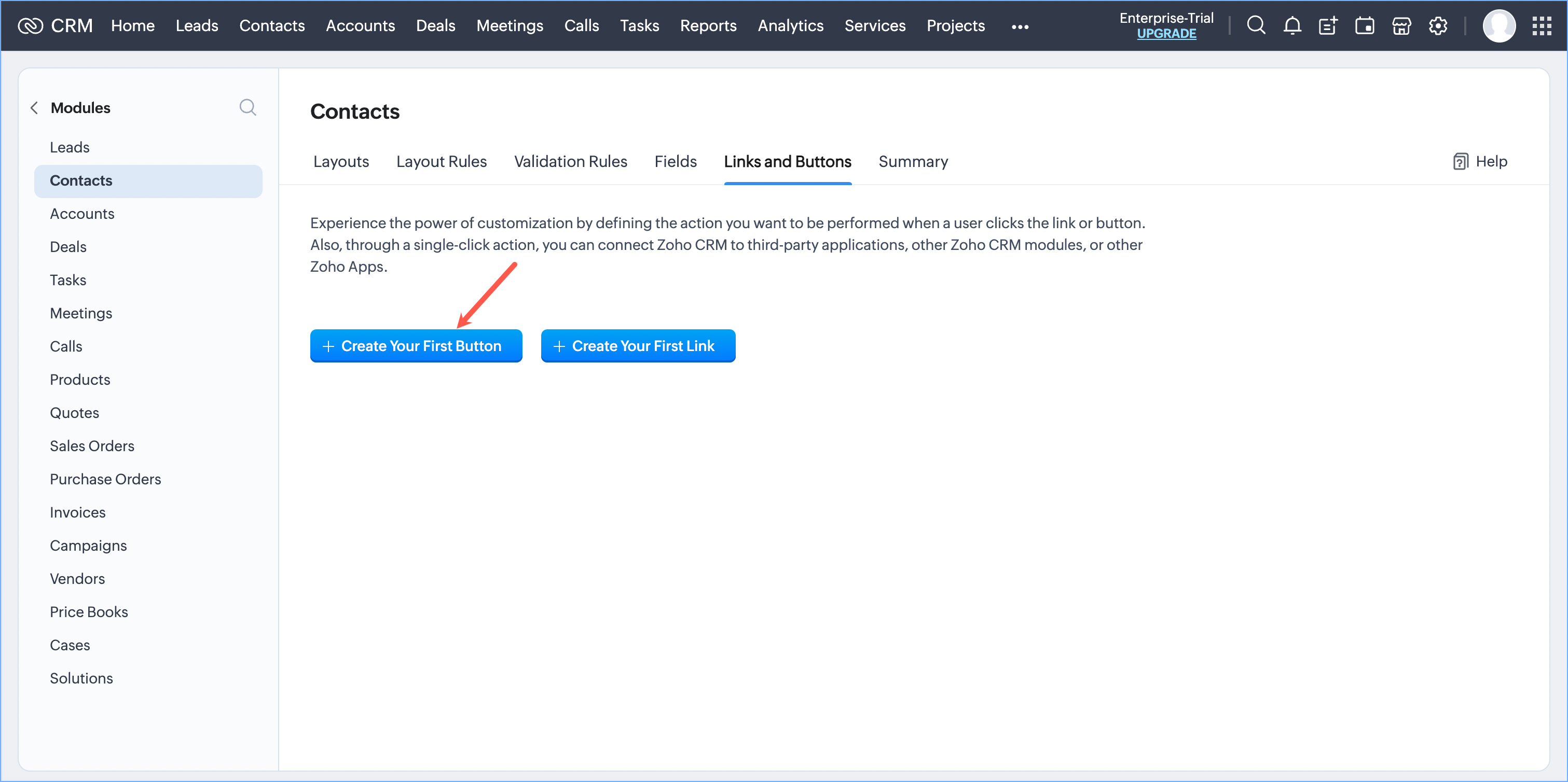 Usecase: Use custom buttons in Zoho CRM to do the following: