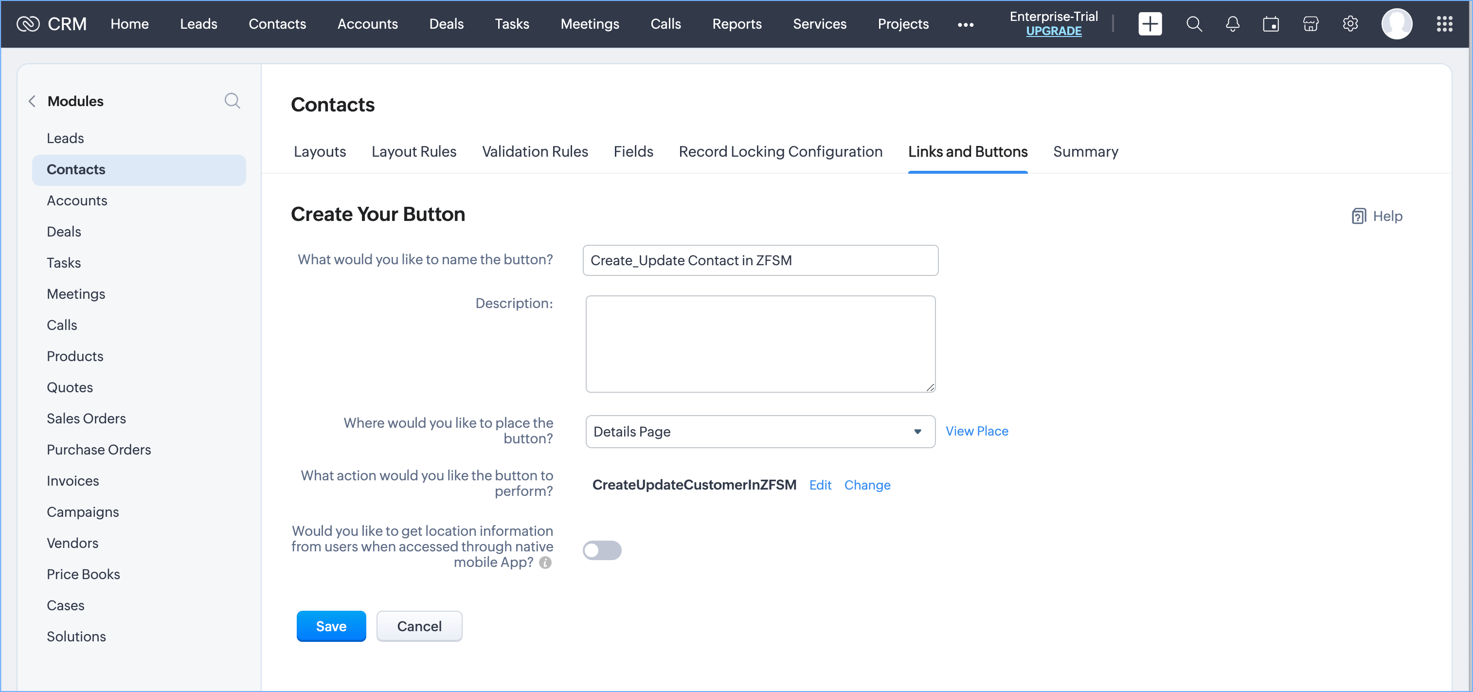 - What would you like to name the button?: Create_Update Contact in ZFSM