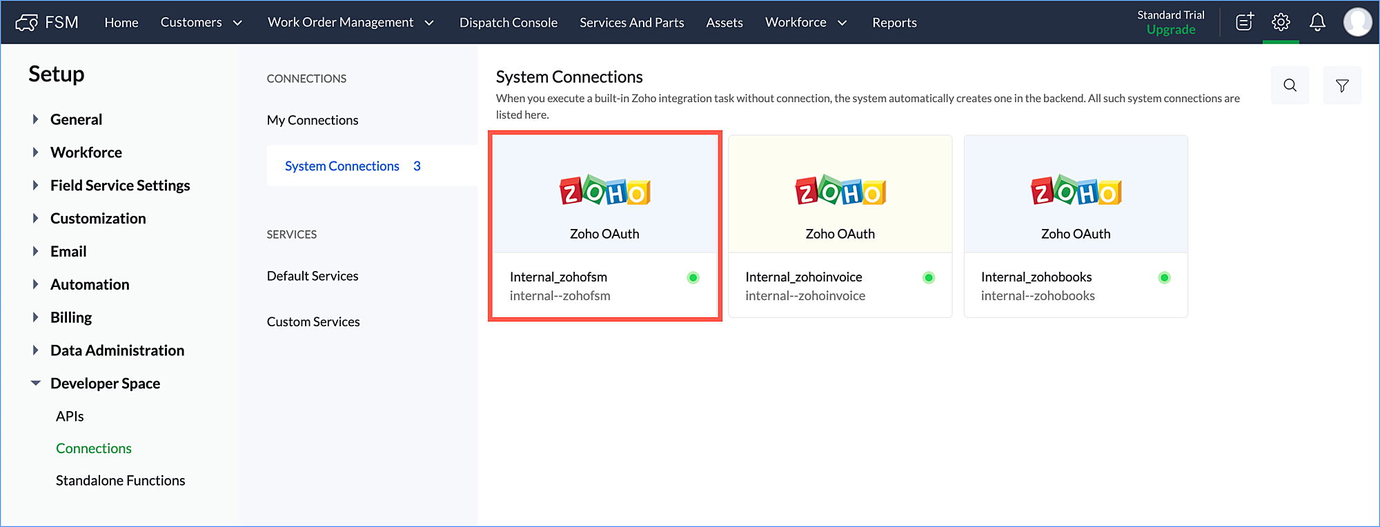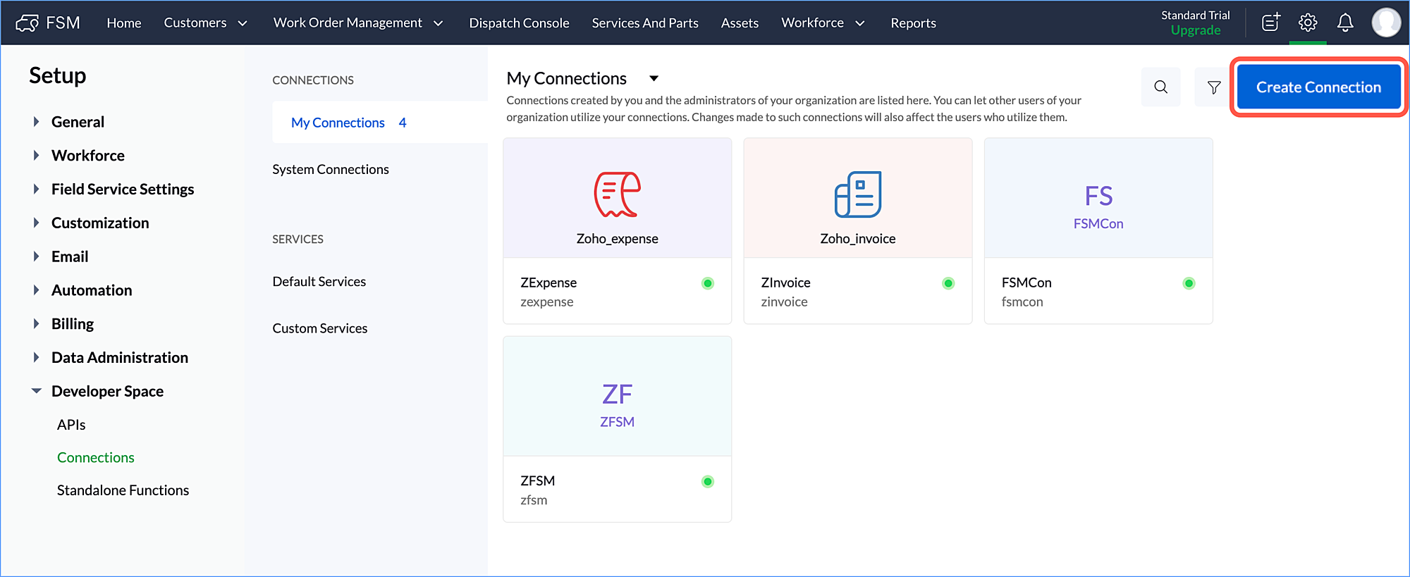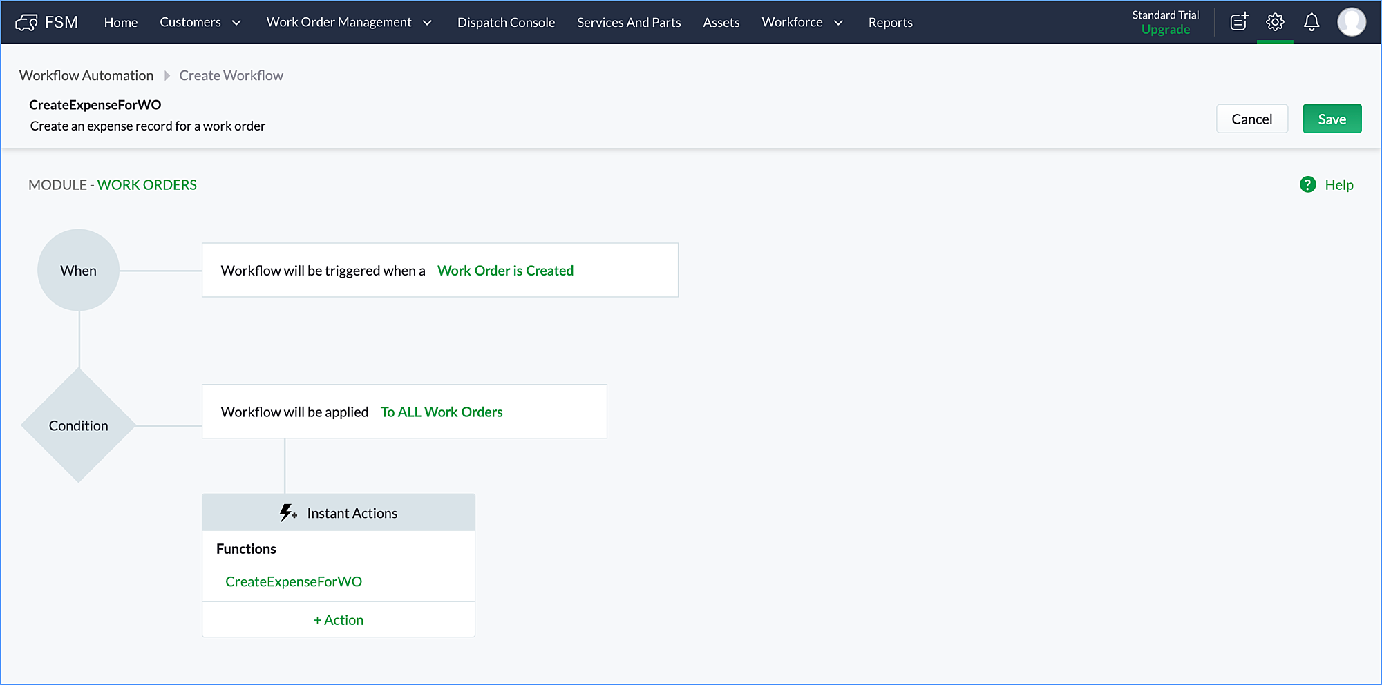 work_order_id = work_order.get("id"); Amount = 0; Service_Line_Items_List = work_order.get("Service_Line_Items").toList(); for each Service_Line_Items in Service_Line_Items_List { Service_Line_Items_Map = Service_Line_Items.toMap(); if(Service_Line_Items_Map.get("Service").toMap().get("name") == "Expense") { //Get Currency Id headers_data = Map(); headers_data.put("X-com-zoho-expense-organizationid","<orgId>"); response = invokeurl [ type :GET headers:headers_data connection:"zexpense" ]; currencyList = response.get("currencies").toList(); for each eachCurrencyList in currencyList { CurrencyMap = eachCurrencyList.toMap(); if(CurrencyMap.get("currency_code") == "USD") { currency_id = CurrencyMap.get("currency_id"); } } //Get Category Id headers_data_1 = Map(); headers_data_1.put("X-com-zoho-expense-organizationid","<orgId>"); response_1 = invokeurl [ type :GET headers:headers_data_1 connection:"zexpense" ]; expense_categories_list = response_1.get("expense_accounts").toList(); for each each_expense_categories_list in expense_categories_list { expense_categories_map = each_expense_categories_list.toMap(); //Use the Expense Category - Travel Expense if(expense_categories_map.get("category_name") == "Travel Expense") { category_id = expense_categories_map.get("category_id"); } } Amount = Amount + Service_Line_Items_Map.get("Line_Item_Amount"); Created_Time = Service_Line_Items_Map.get("Created_Time").toString(); Create_Date = Created_Time.getPrefix("T"); lineItemList = list(); lineItemMap = Map(); lineItemMap.put("category_id",category_id); lineItemMap.put("amount",Amount); lineItemMap.put("description","From Zoho FSM"); lineItemList.add(lineItemMap); createMap = Map(); createMap.put("currency_id",currency_id); createMap.put("date",Create_Date); createMap.put("is_reimbursable",true); createMap.put("line_items",lineItemList); headers_data_2 = Map(); headers_data_2.put("X-com-zoho-expense-organizationid","<orgId>"); response_2 = invokeurl [ type :POST parameters:createMap.toString() headers:headers_data_2 connection:"zexpense" content-type:"application/json" ]; expense_id = response_2.get("expenses").toMap().get("expense_id").toString(); updateResp = zoho.fsm.updateRecord("Work_Orders",work_order_id,{"<custom_field_Api_name>":expense_id}); } } |