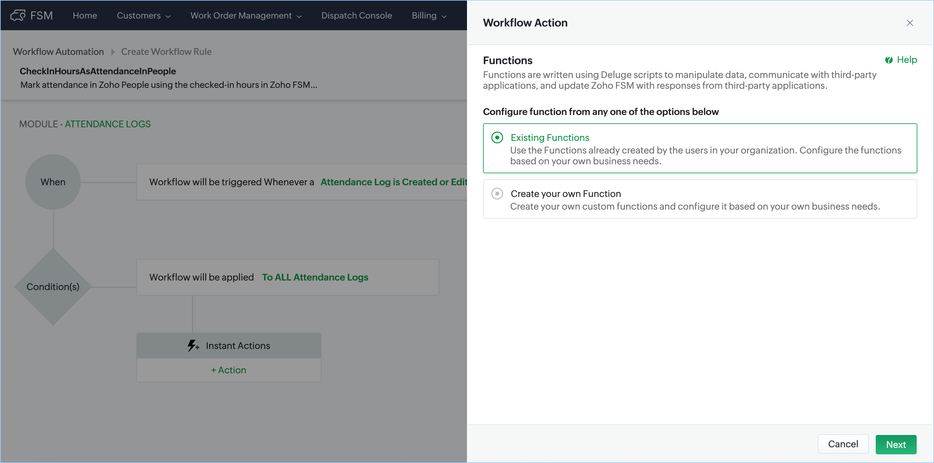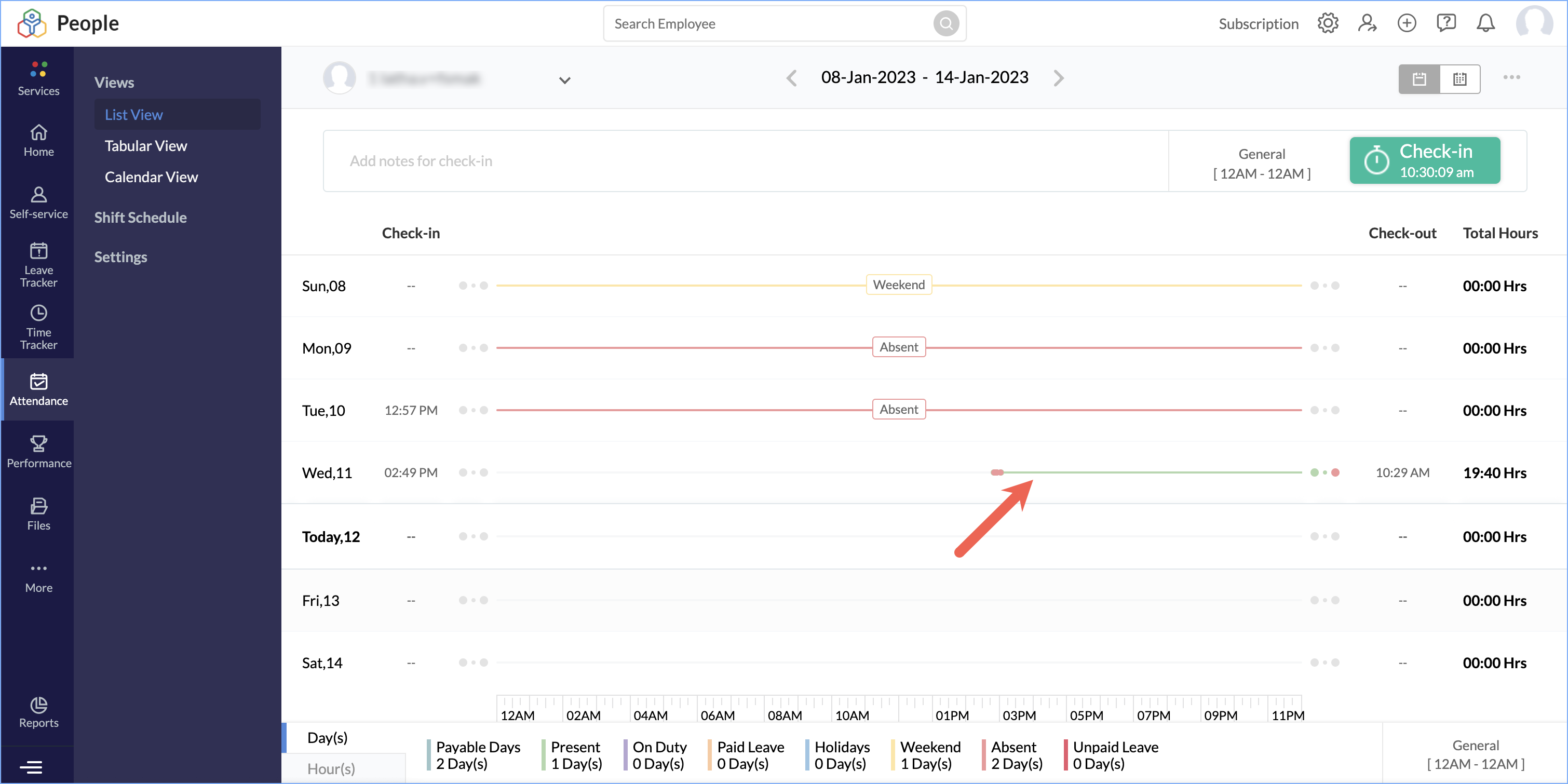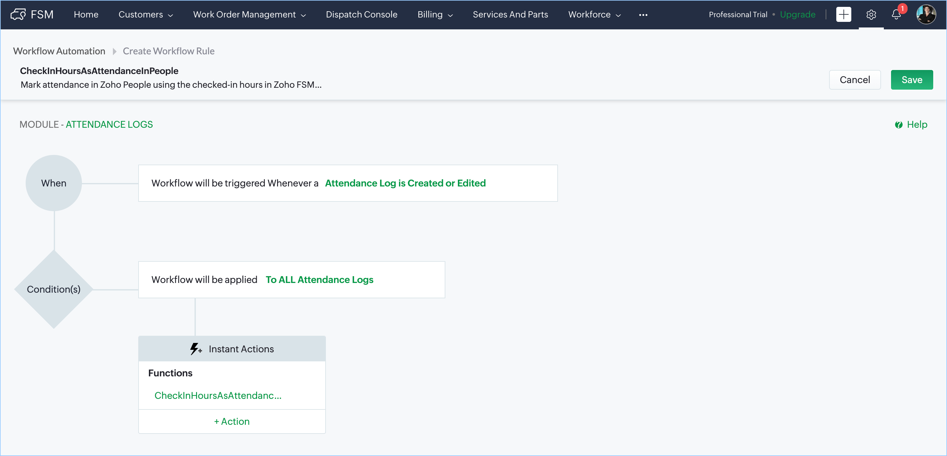 /* ------check-In time----- */ Check_In_Time = attendance_log.get("Check_In_Time"); Check_In_temp_time = Check_In_Time.getSuffix("T"); Check_In_time_f = Check_In_temp_time.subString(0,8); Temp_Check_In_Time = Check_In_Time.toTime(); Check_In_date = Temp_Check_In_Time.getDay().toLong(); if(Check_In_date < 10) { Check_In_date = "0" + Check_In_date; } Check_In_month = Temp_Check_In_Time.getMonth().toLong(); if(Check_In_month < 10) { Check_In_month = "0" + Check_In_month; } Check_In_year = Temp_Check_In_Time.getYear(); Final_Check_In_Time = Check_In_date + "/" + Check_In_month + "/" + Check_In_year + " " + Check_In_time_f; /* ------check-out time----- */ Check_Out_Time = attendance_log.get("Check_Out_Time"); if(Check_Out_Time != null) { Check_Out_temp_time = Check_Out_Time.getSuffix("T"); Check_Out_time_f = Check_Out_temp_time.subString(0,8); Temp_Check_Out_Time = Check_Out_Time.toTime(); Check_Out_date = Temp_Check_Out_Time.getDay().toLong(); if(Check_Out_date < 10) { Check_Out_date = "0" + Check_Out_date; } Check_Out_month = Temp_Check_Out_Time.getMonth().toLong(); if(Check_Out_month < 10) { Check_Out_month = "0" + Check_Out_month; } Check_Out_year = Temp_Check_Out_Time.getYear(); Final_Check_Out_Time = Check_Out_date + "/" + Check_Out_month + "/" + Check_Out_year + " " + Check_Out_time_f; } /* ------Owner Email----- */ owner_map = attendance_log.get("Owner").toMap(); owner_email = owner_map.get("email"); /* ------People Check-In check-Out Code----- */ if(Check_Out_Time == null) { paramMap = Map(); paramMap.put("dateFormat","dd/MM/yyyy HH:mm:ss"); paramMap.put("checkIn",Final_Check_In_Time); paramMap.put("emailId",owner_email); response = invokeurl [ type :POST parameters:paramMap connection:"zohopeoplecon" ]; } else { paramMap = Map(); paramMap.put("dateFormat","dd/MM/yyyy HH:mm:ss"); paramMap.put("checkOut",Final_Check_Out_Time); paramMap.put("emailId",owner_email); response = invokeurl [ type :POST parameters:paramMap connection:"zohopeoplecon" ]; info "response: " + response; } |
