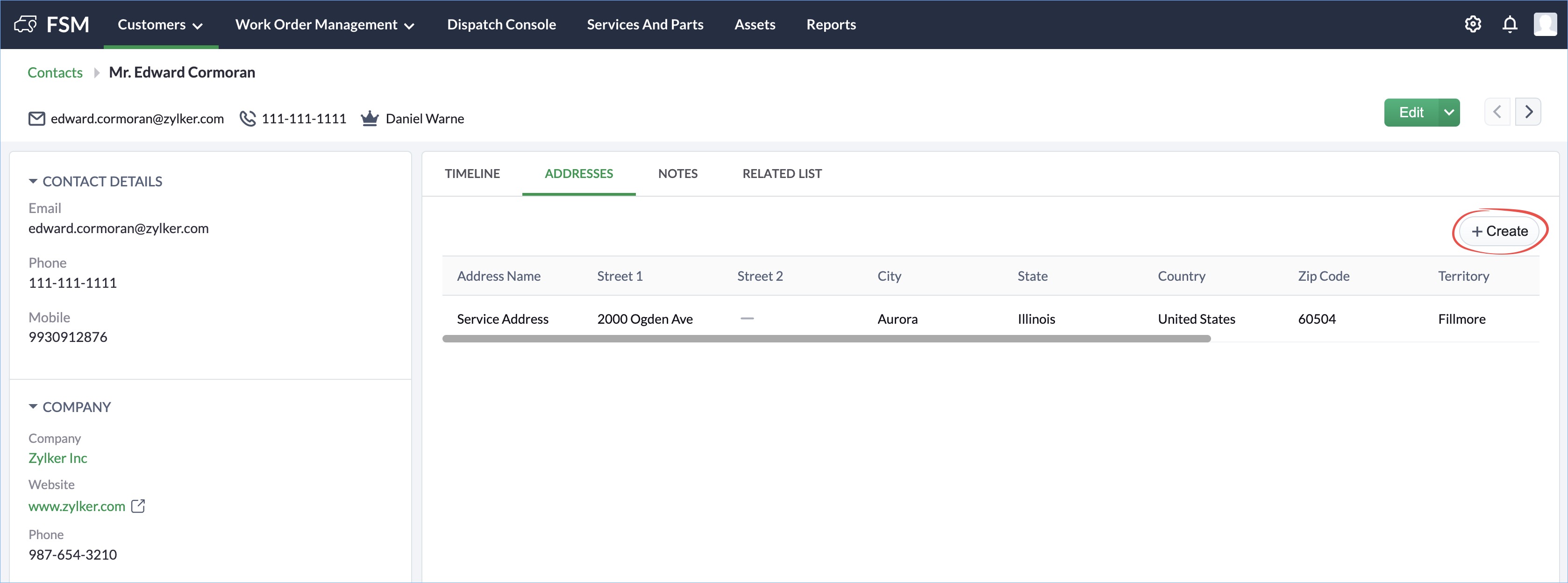 Any of these addresses can be assigned as a Service or Billing address of the contact.