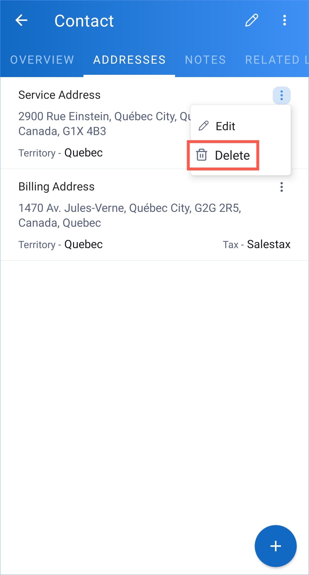 2. You can delete a contact address only if you have the Delete permission for the Contact, and Company modules.