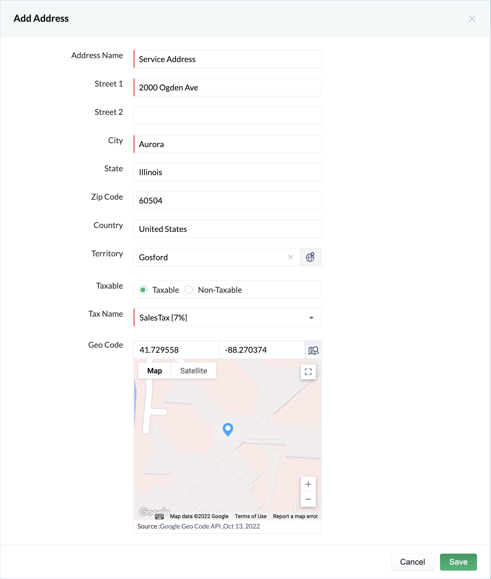 2. In the Add Address overlay, enter the necessary details and click Save.