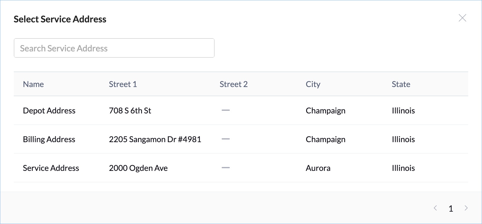 1. Choose another address : If there are multiple addresses present, then click the Choose another icon [  ] to select another address. In the Select Billing/Service Address pop-up, select the desired address.