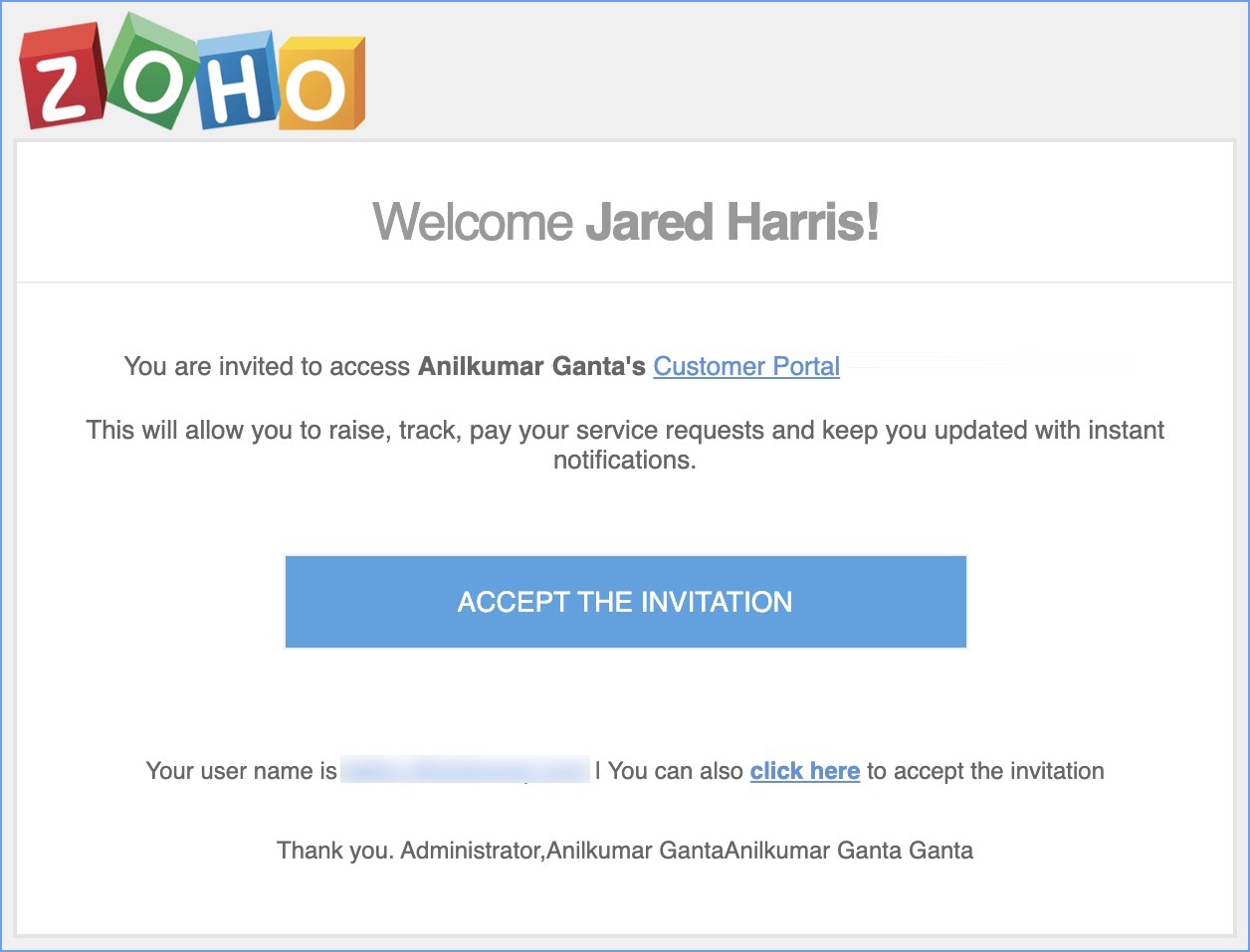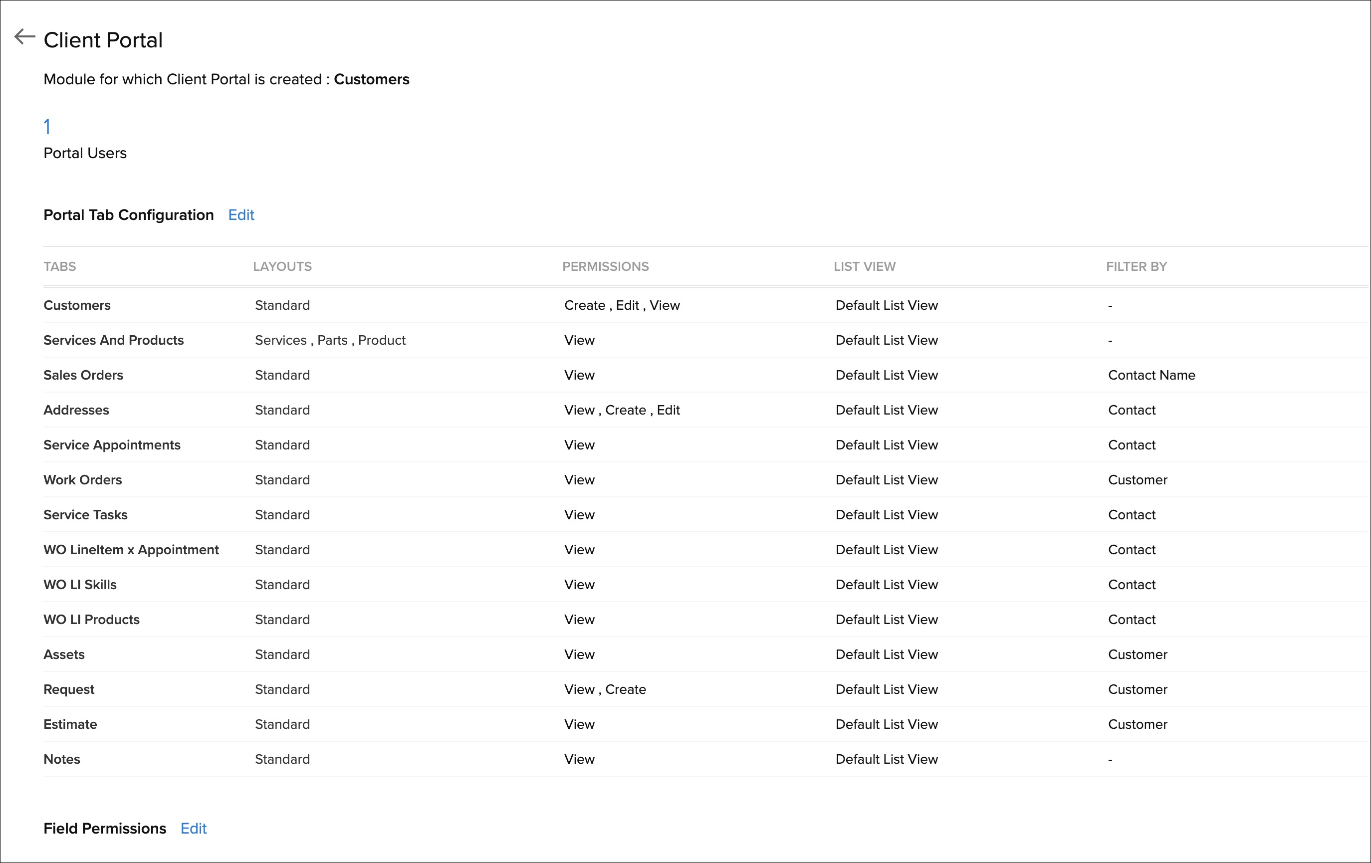With Customer Portal, you can share selective data in Zoho FSM with your users. To provide portal access, you need to send email invites to your users. Before sending out invites, ensure that the portal is enabled (refer screenshot below).