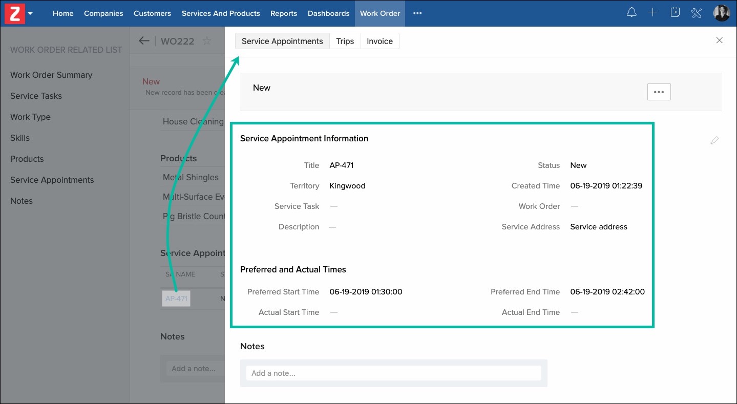 • Create a Work Order in Zoho FSM from an Invoice in Zoho Books