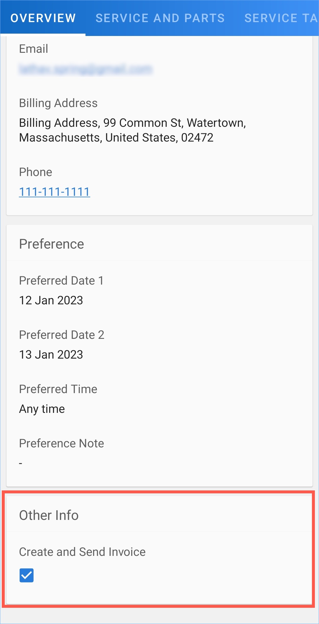 In the mobile app, the custom fields will be displayed in the Other Info section under the Overview tab of the [Module] Details page.