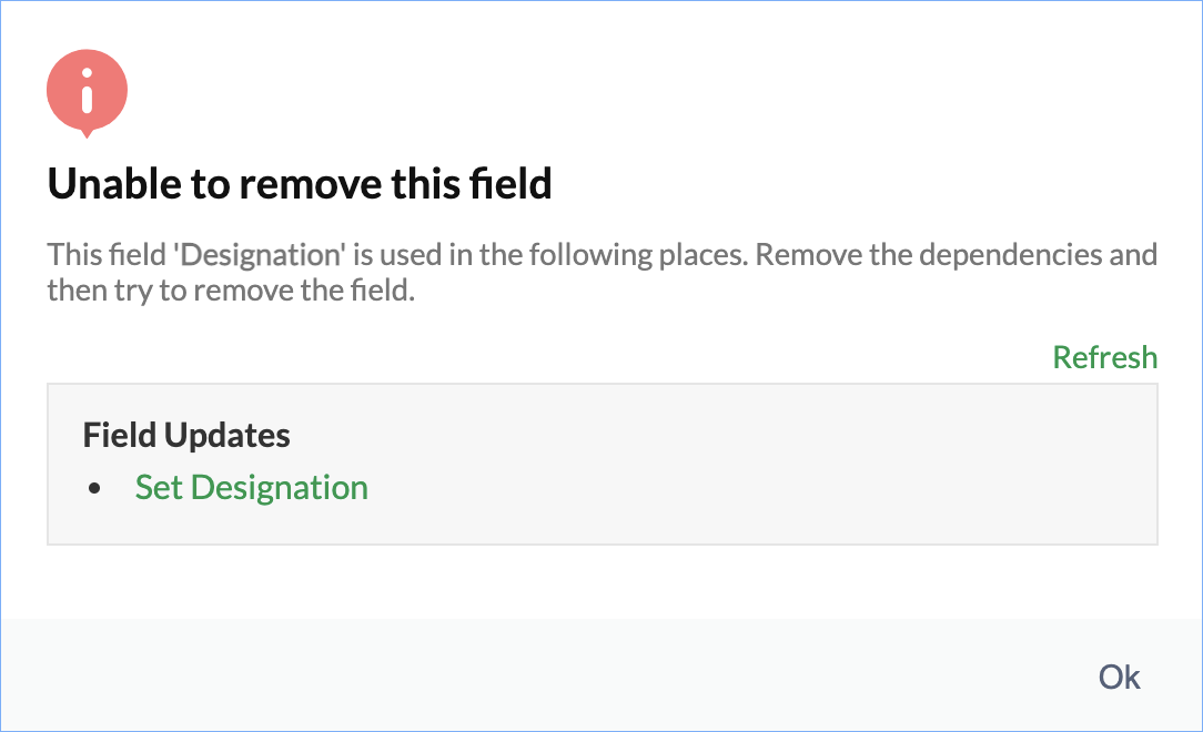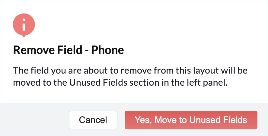 - In the confirmation message, click Yes, Move to Unused Fields.