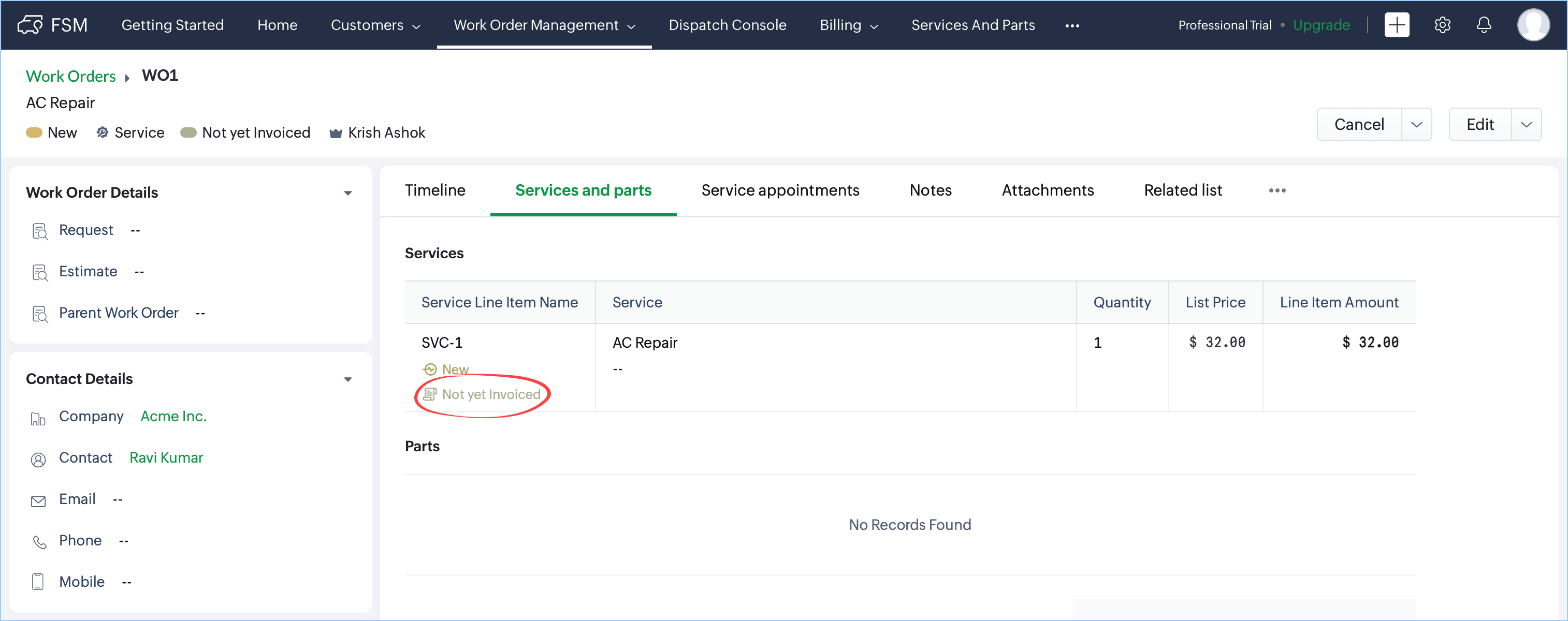 To handle invoicing, and payments, Zoho FSM has built-in integration with Zoho Invoice. This will allow you to conveniently and quickly create invoices for your work orders and offer a secure way to your contacts to make payments. This means your ...