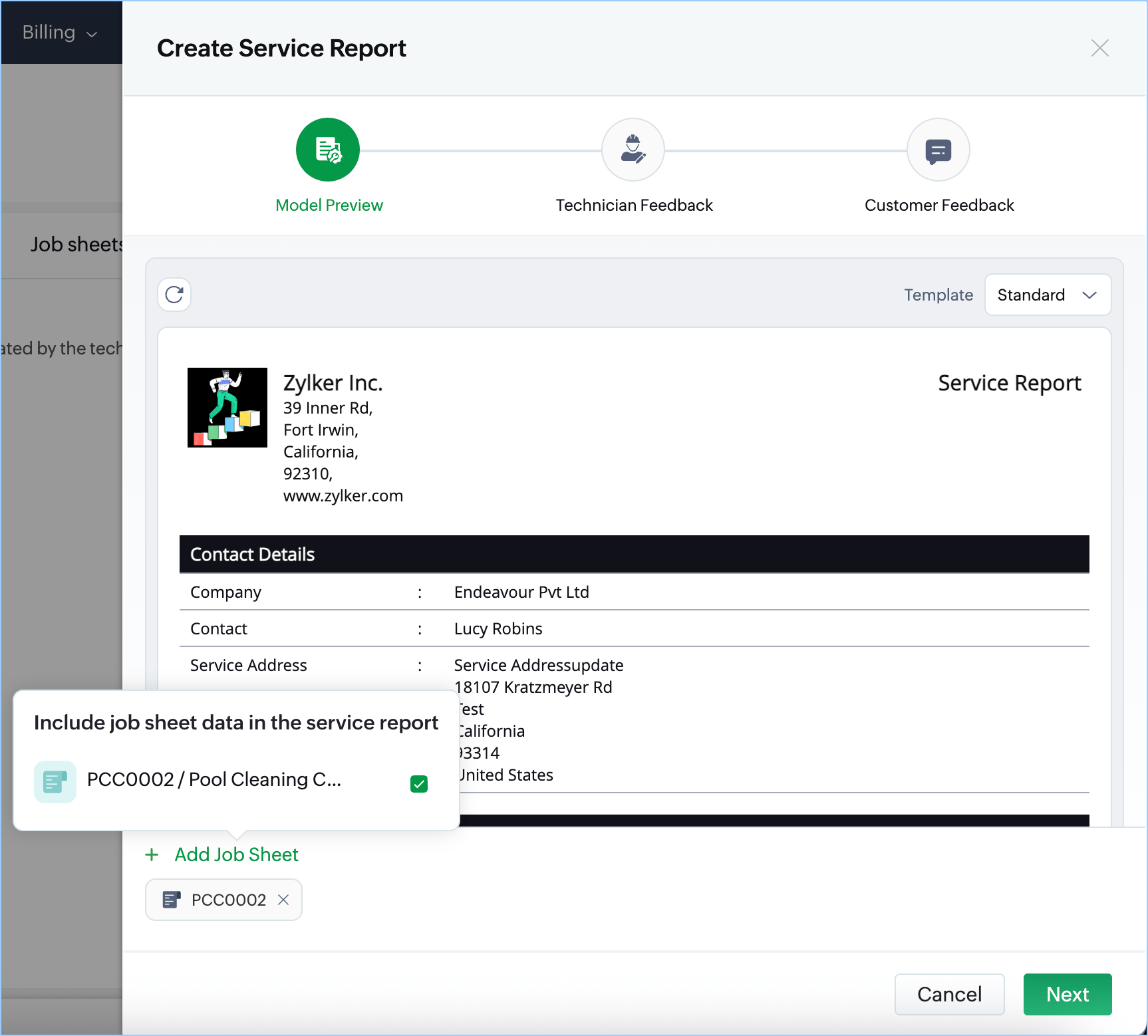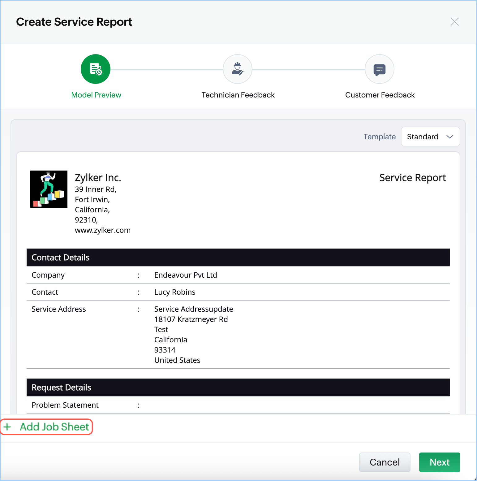 Job sheets in Zoho FSM can be customized to suit any industry. Below are some sample job sheets.