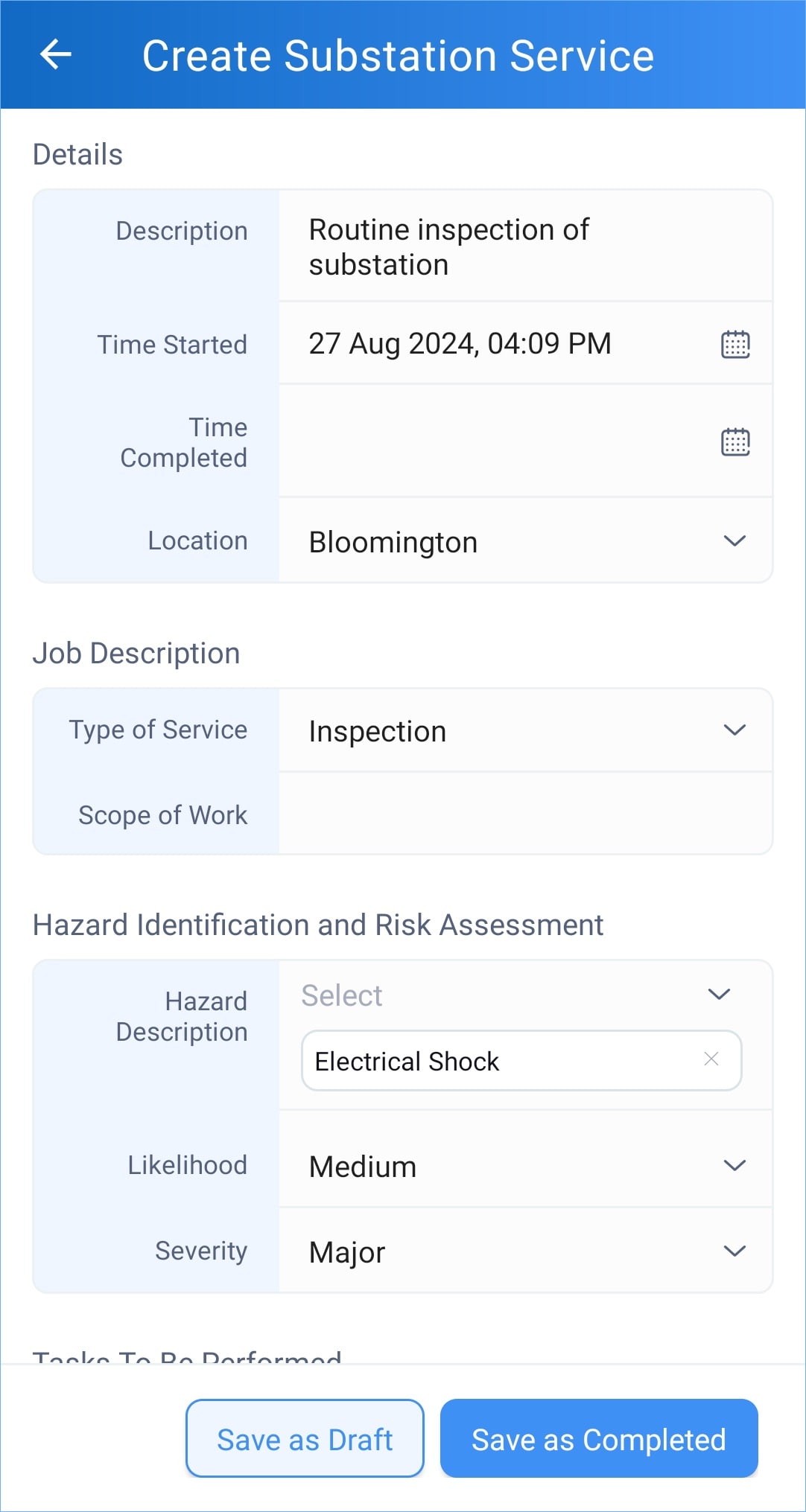- You can either Save as Draft or Save as Completed.