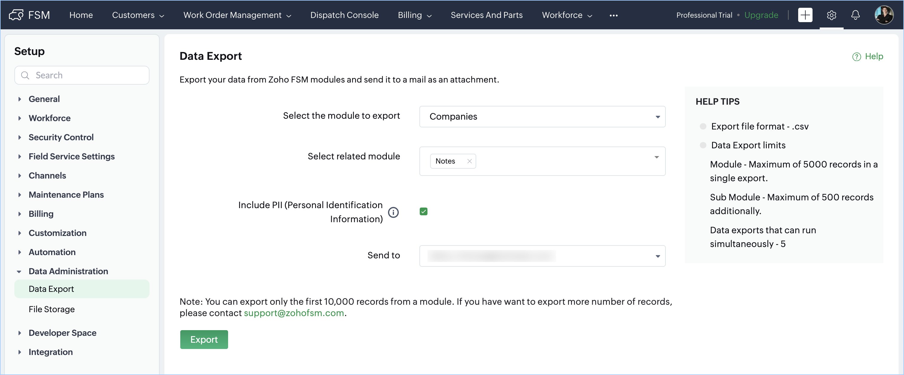 Maximum records that can be exported from a module in a single export | 1000 | 3000 | 5000 |