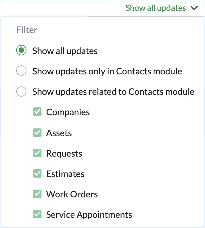 - Show updates related to the module alone or include updates of related records too