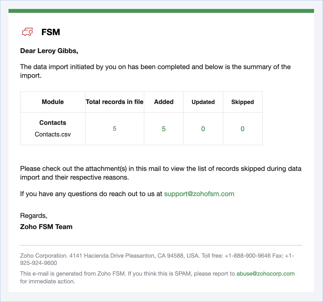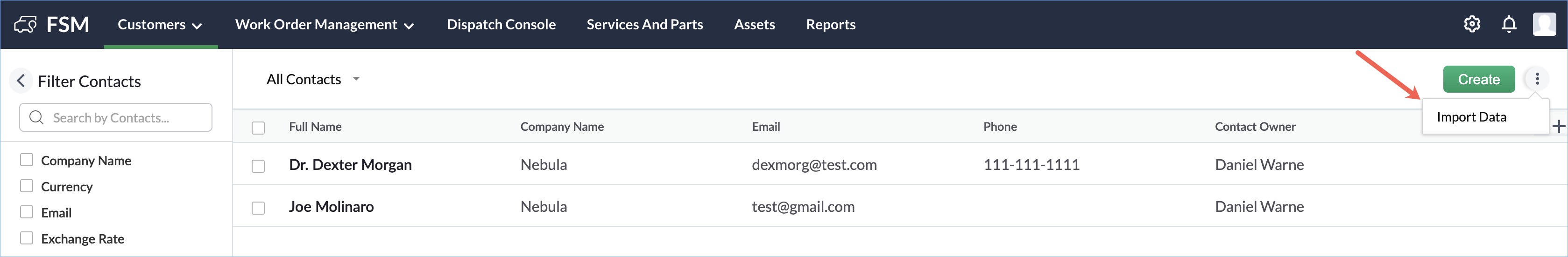 Import Zoho CRM data into FSM