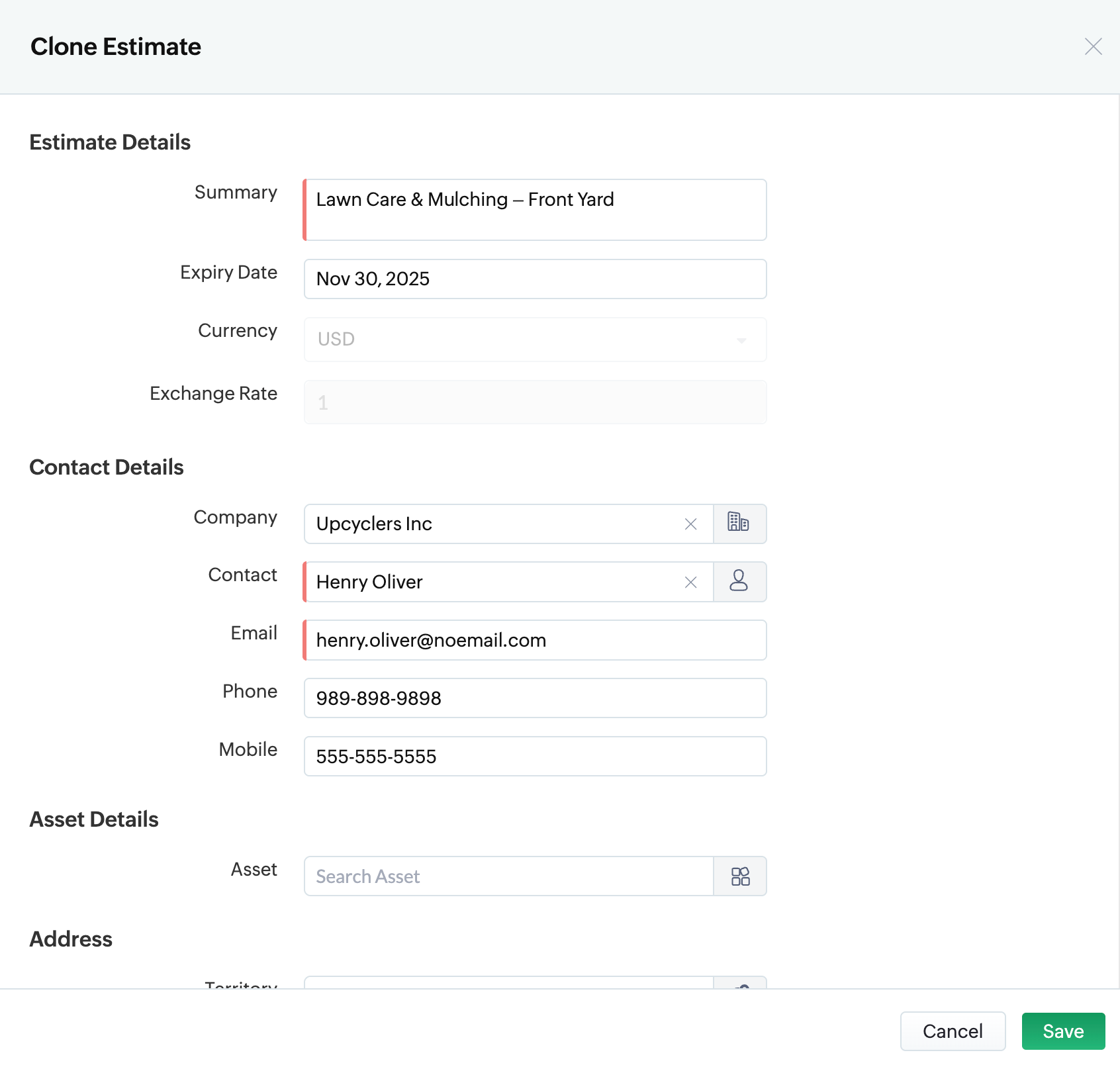 Can I clone an Estimate in Zoho FSM? How to clone an Estimate in Zoho FSM?