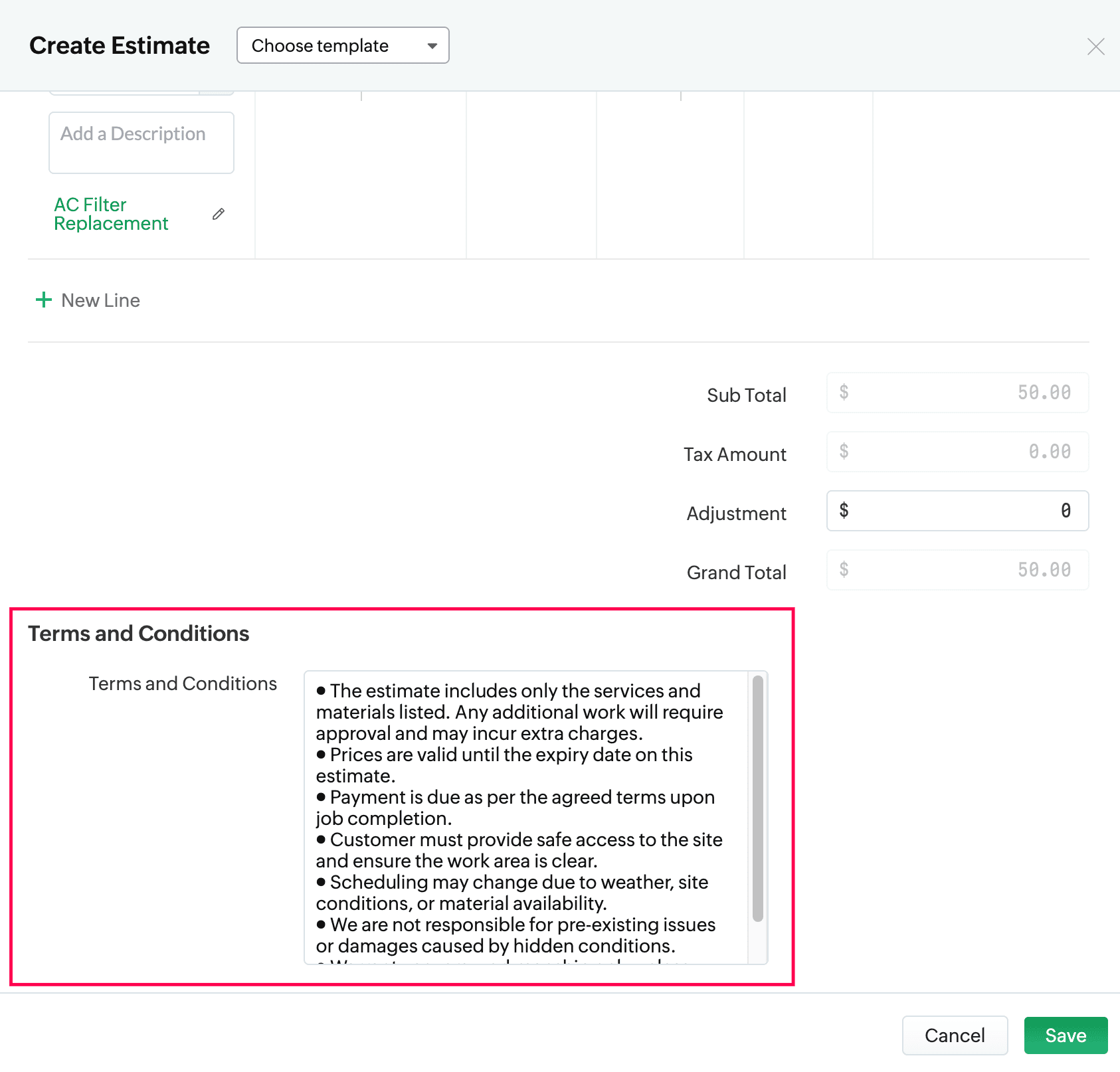 • How do I add Terms and Conditions to all my Estimates in Zoho FSM?