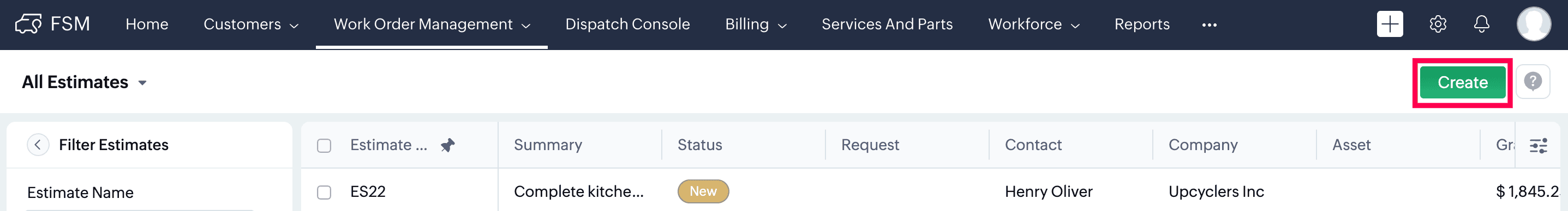 • How can I create an Estimate directly in Zoho FSM? How can I create a new Estimate in Zoho FSM?