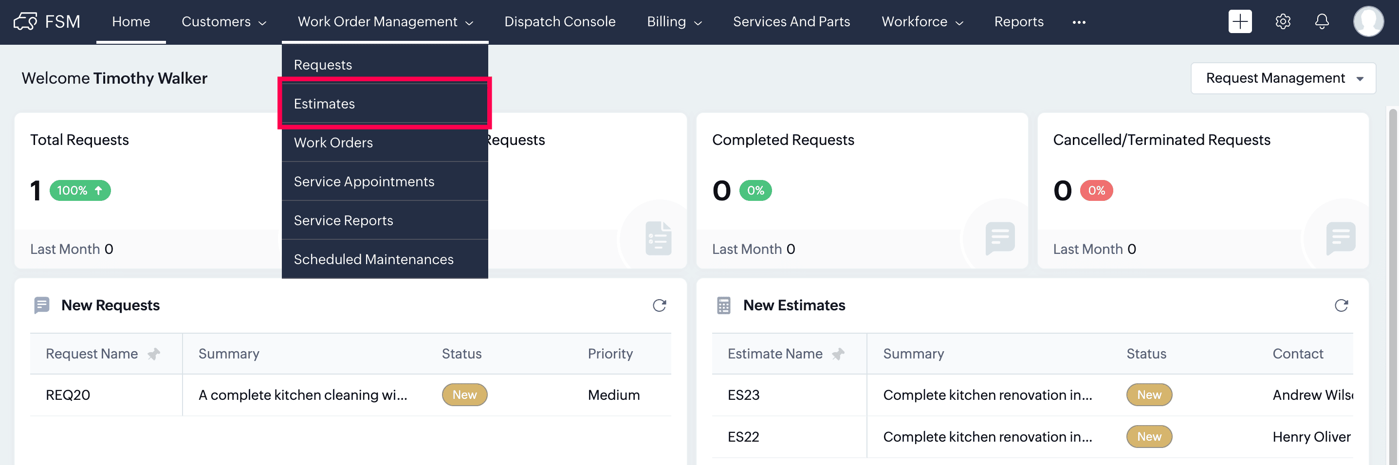1. Go to Work Order Management > Estimates.