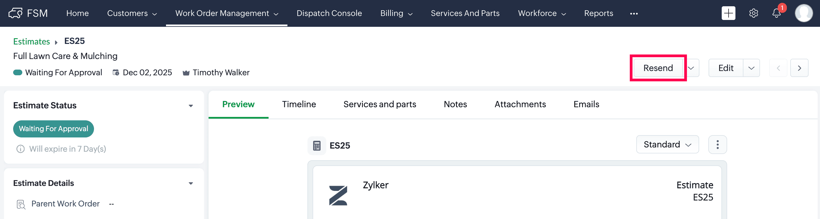 My customer hasn't received the estimate email I've sent. How to handle this in Zoho FSM?