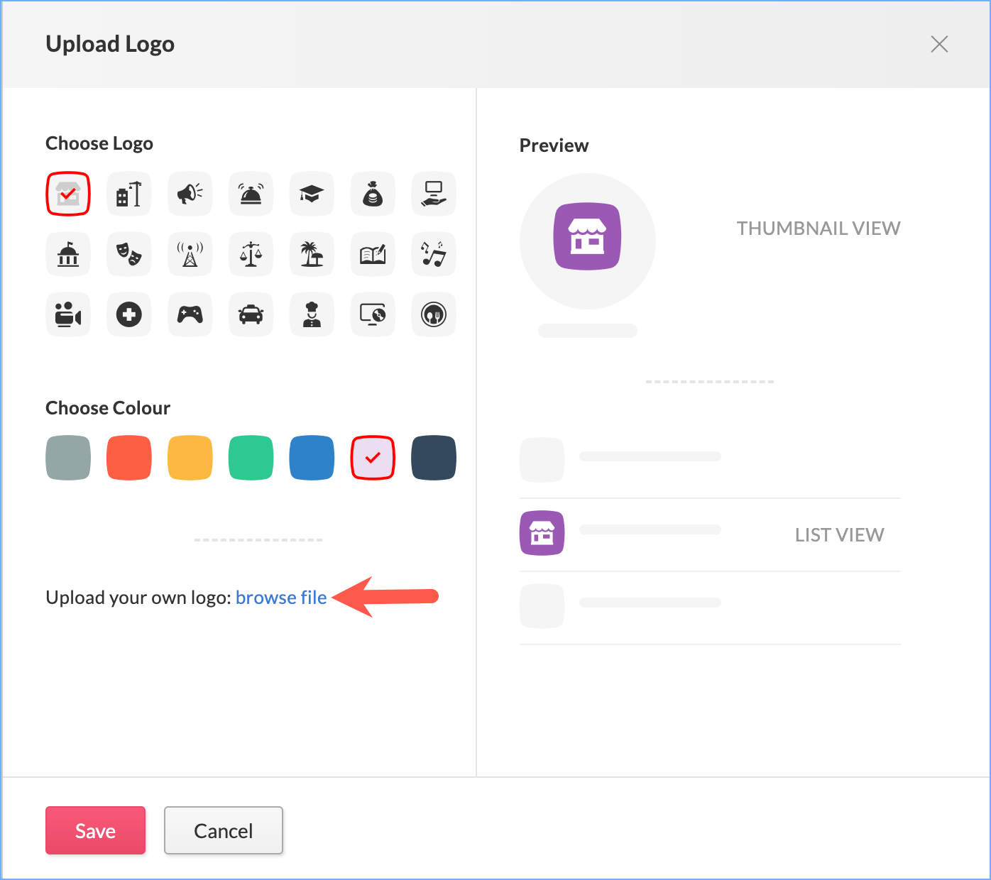 8. Click browse file to add the Zoho FSM logo and click Save.