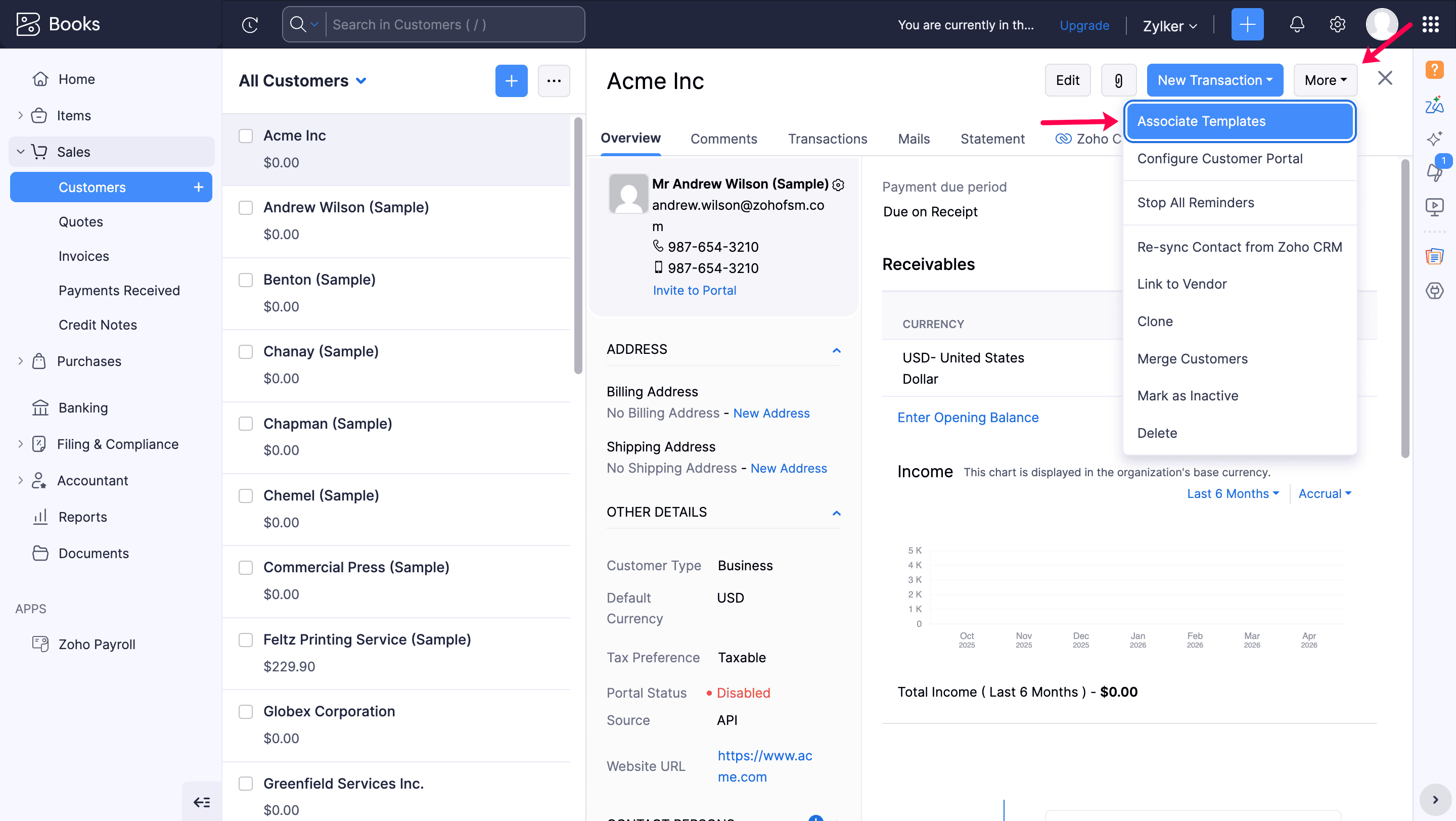 - Go to your integrated finance organisation (Zoho Books/Zoho Invoice).