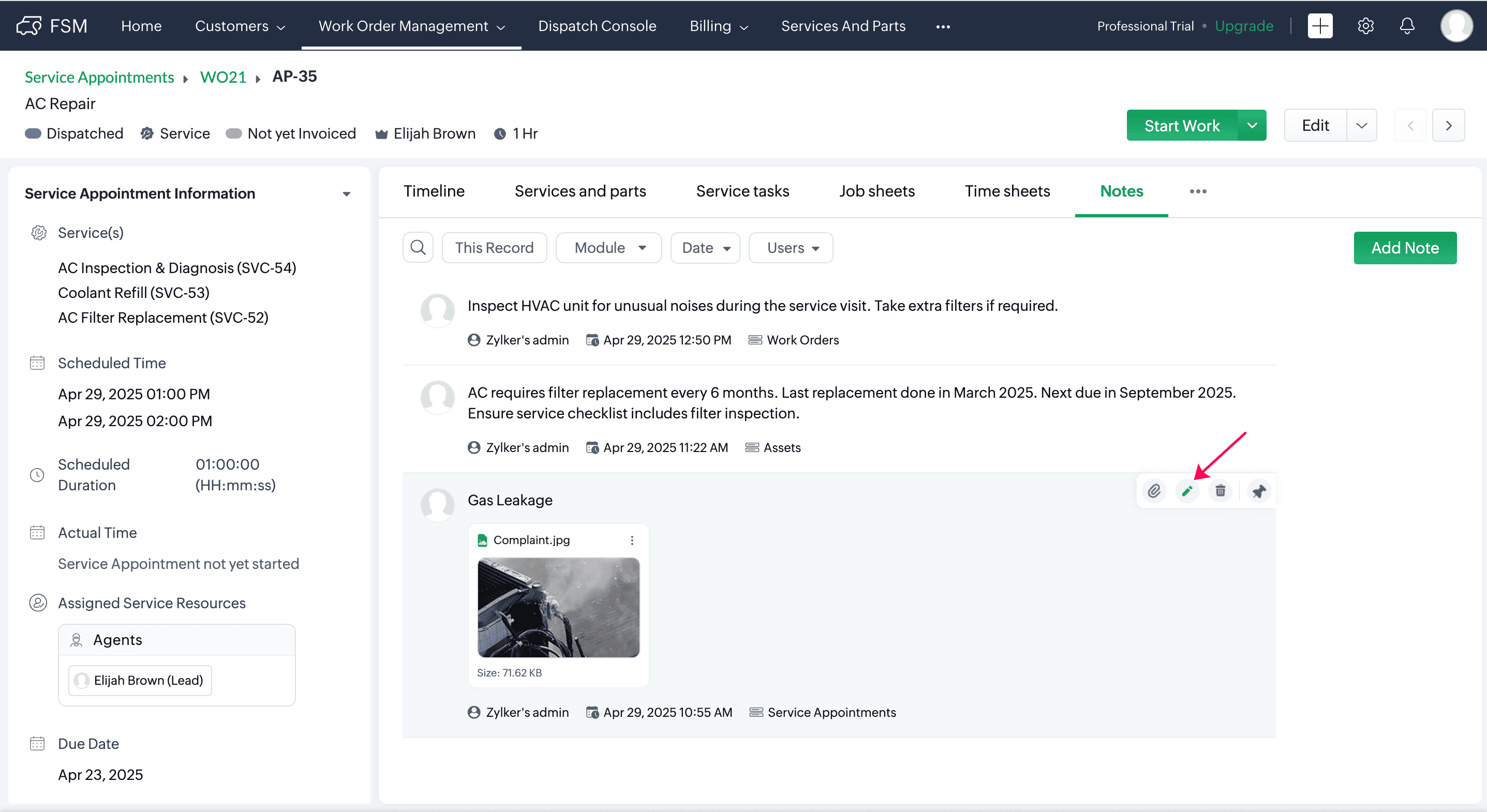 Click the Edit [] icon next to the note.