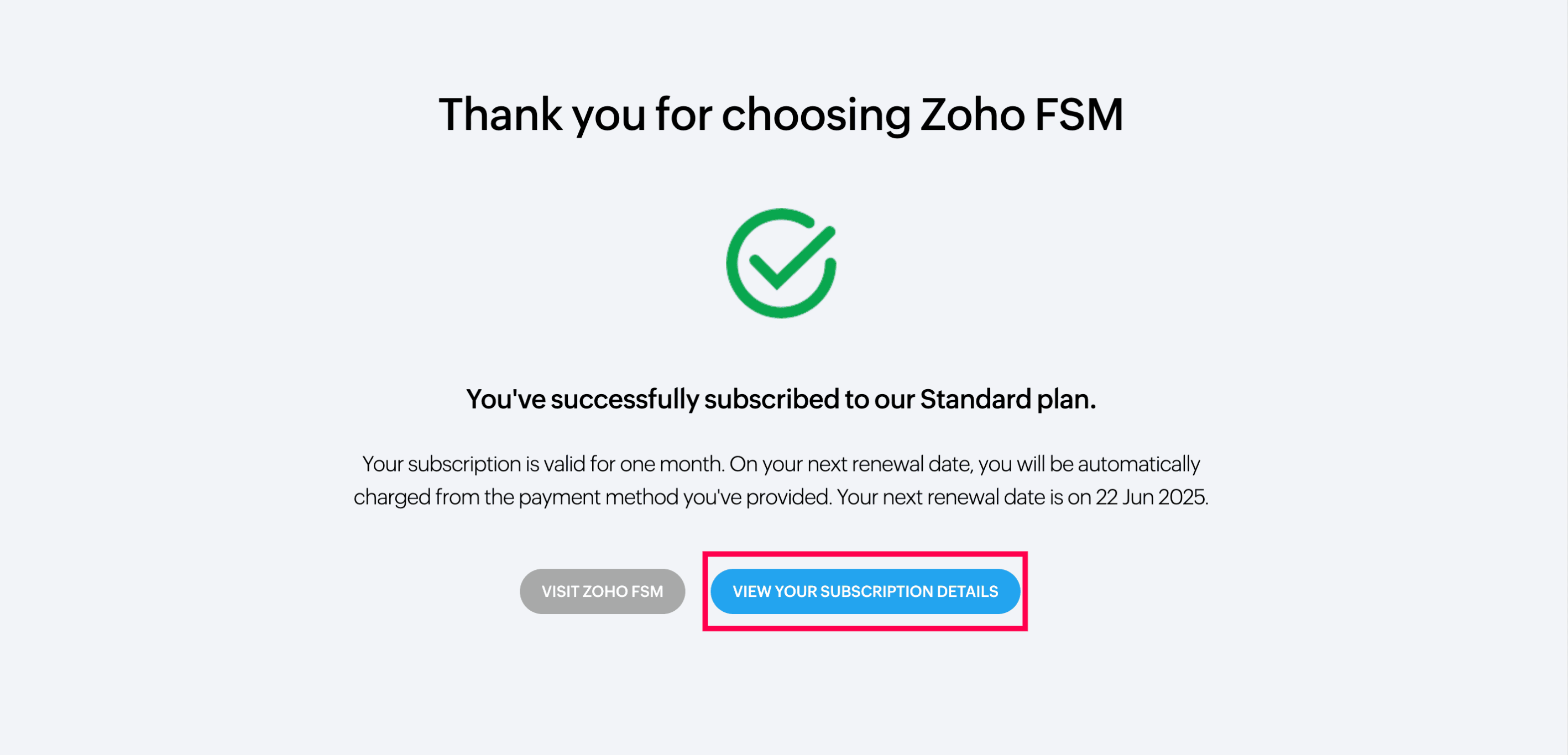 After successful payment, to get more details about your subscription, Click View Subscription Details.