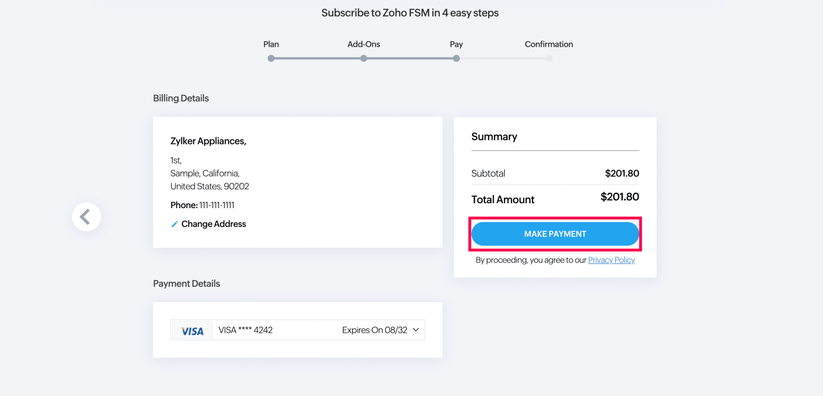 Enter your payment details and click Make Payment.