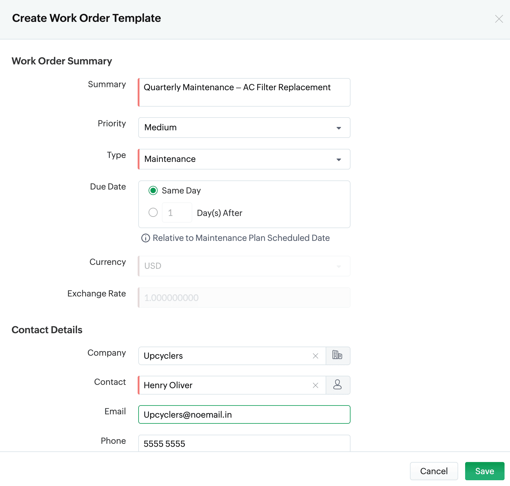 1. Work Order Summary (Summary, Priority, Type, Due Date)