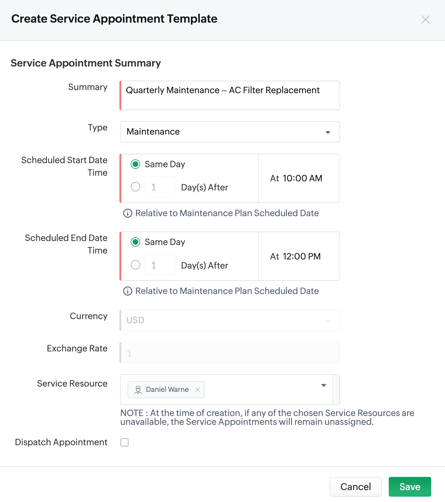 Service appointments are jobs created for carrying out the services in a work order. These service appointments are assigned to field agents or crew who will then perform the services at the contact location. As many service appointments as the ...