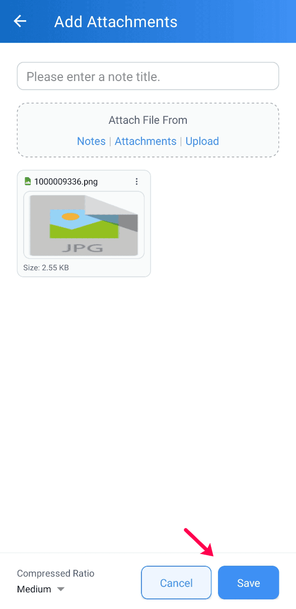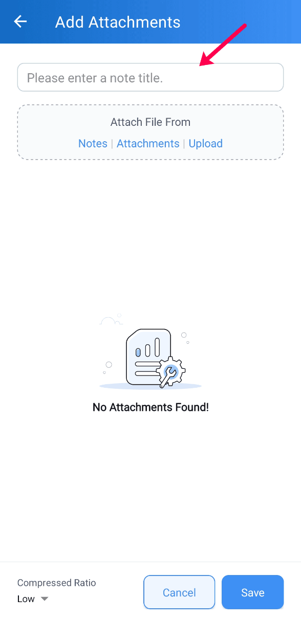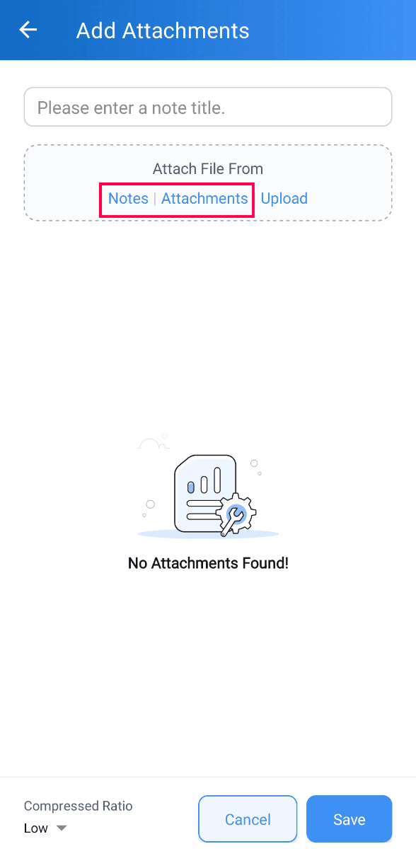 In the Attachments section, click the ‘+’ icon
