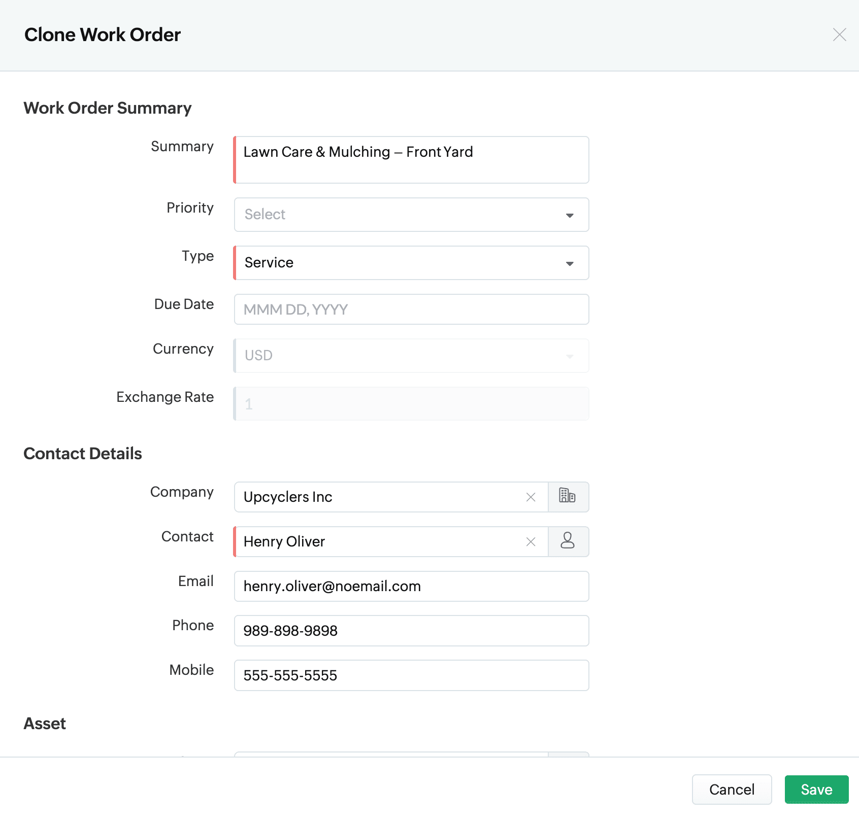 4. Review the details in the cloned Work Order, make any changes if needed, and click Save.