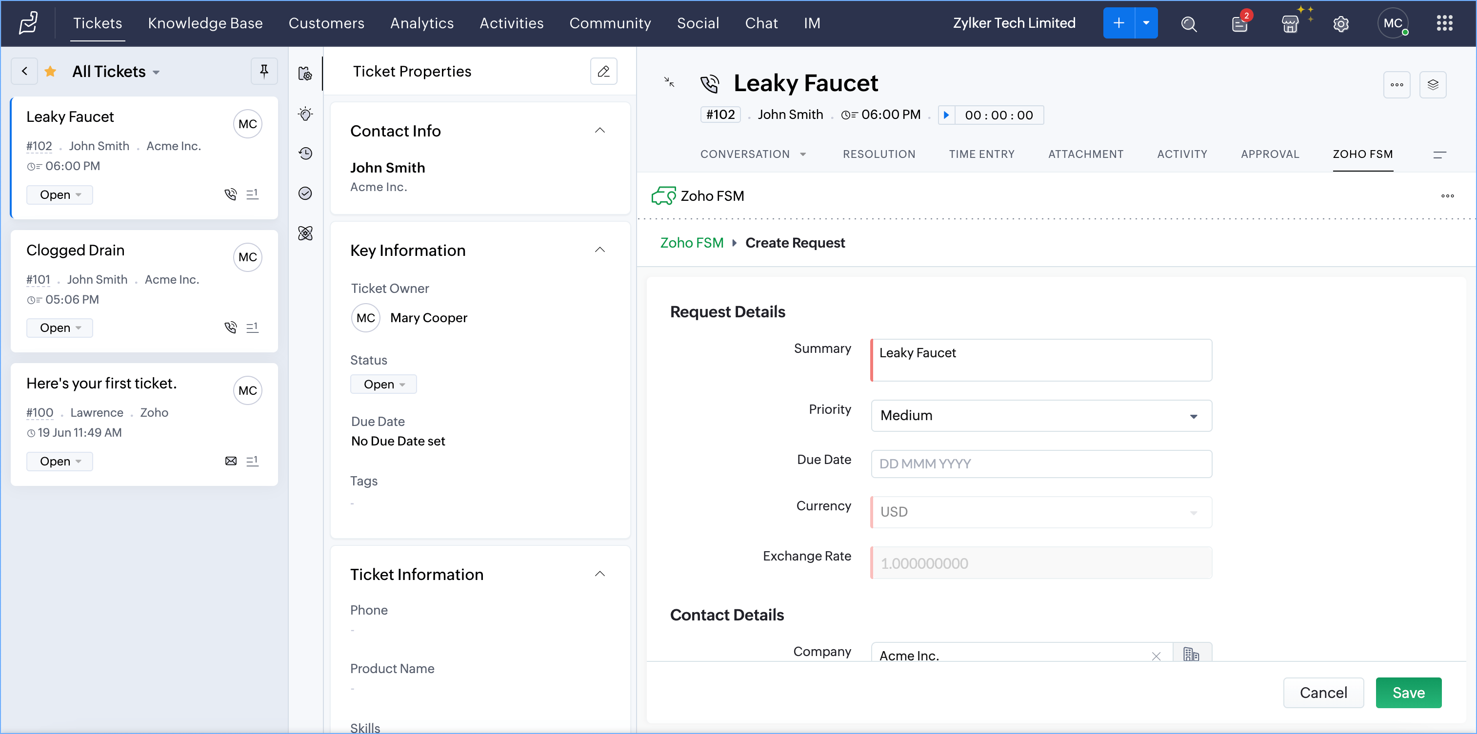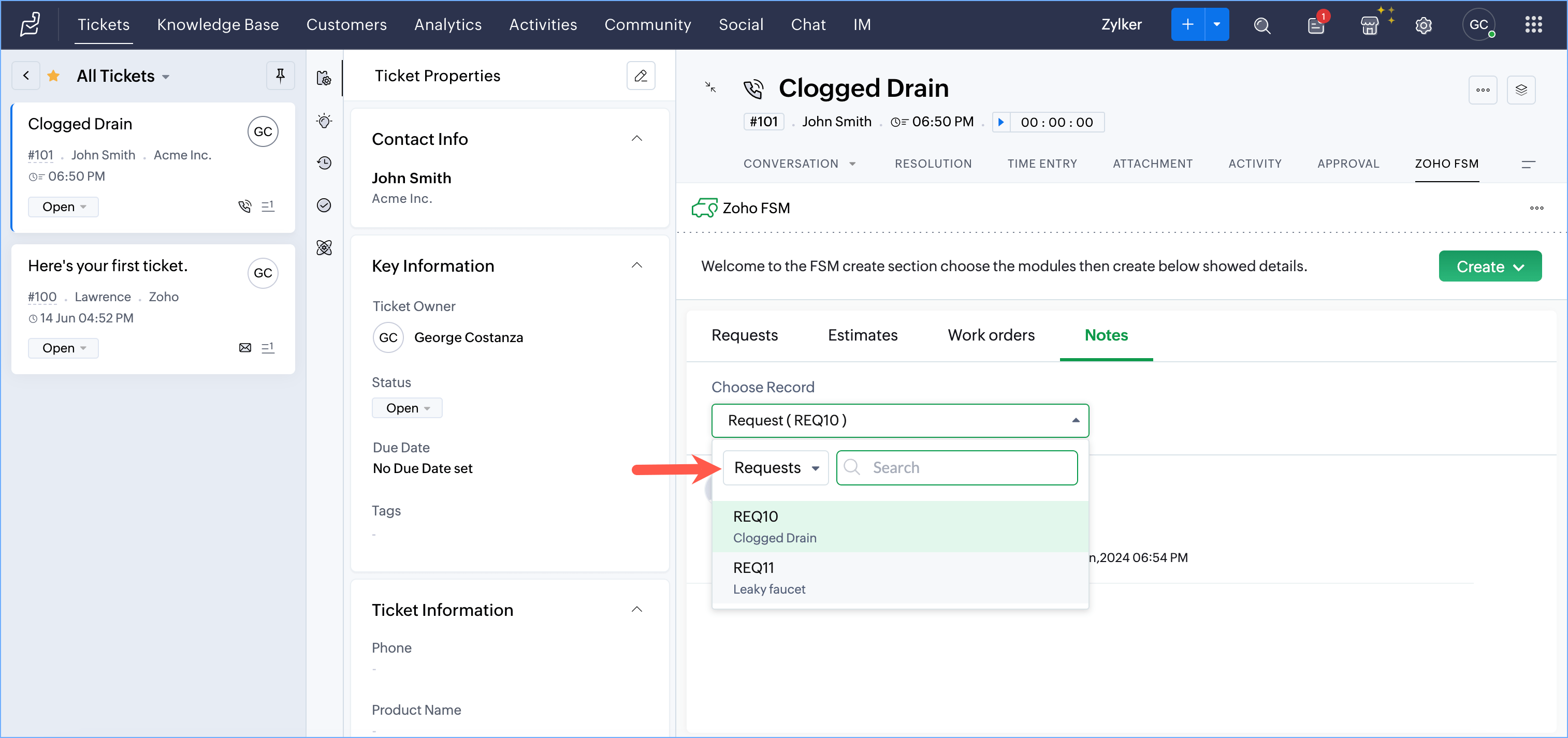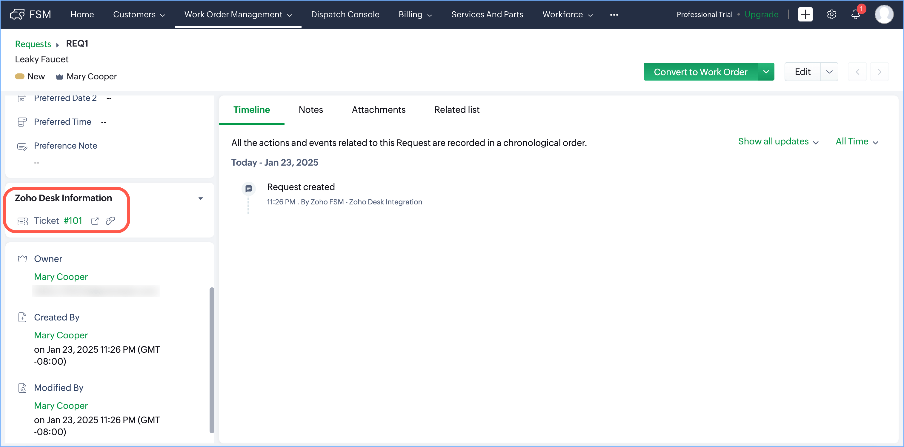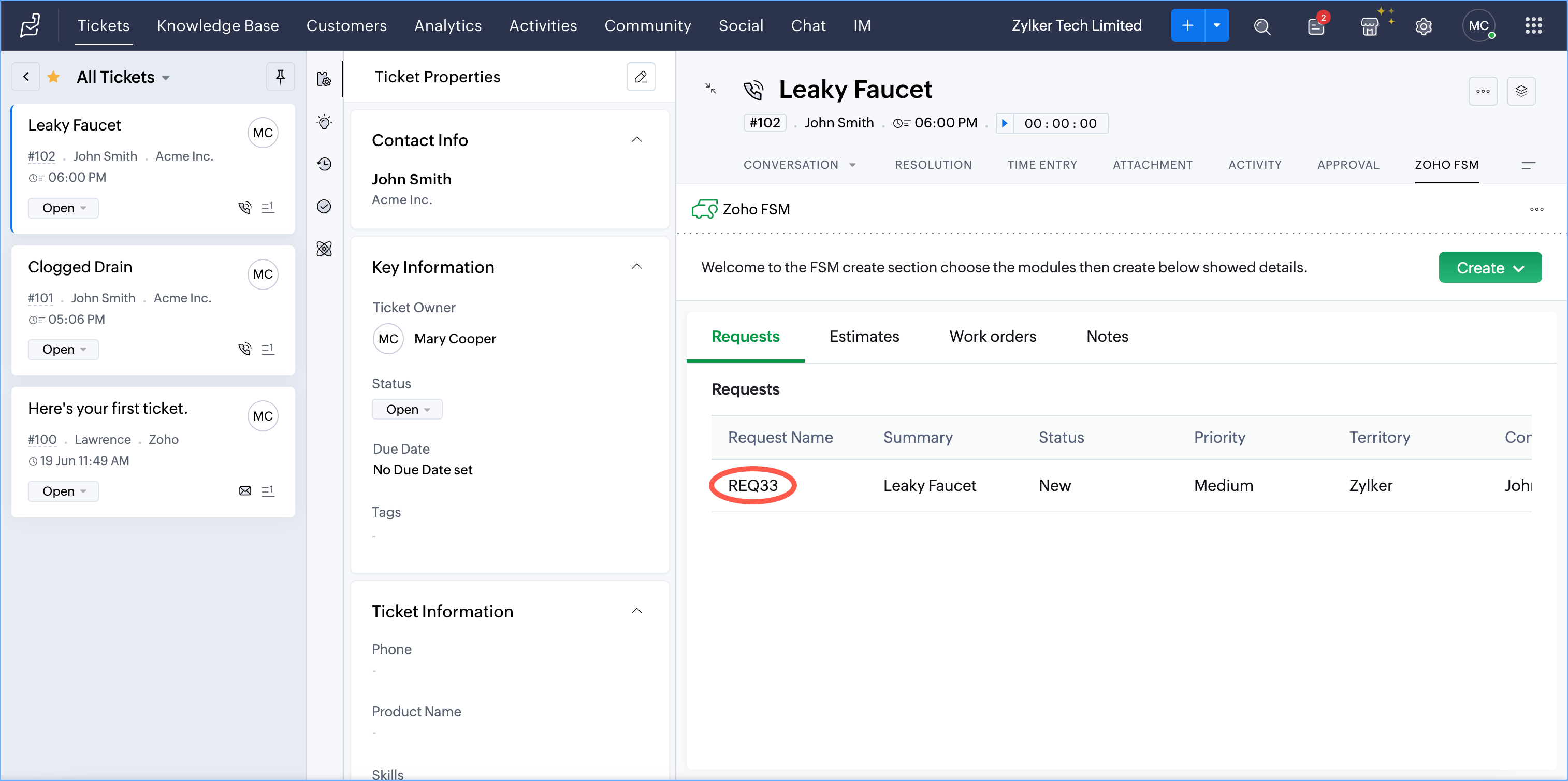 - Create Zoho FSM Requests, Estimates, and Work Orders from a Zoho Desk Ticket, Account or Contact