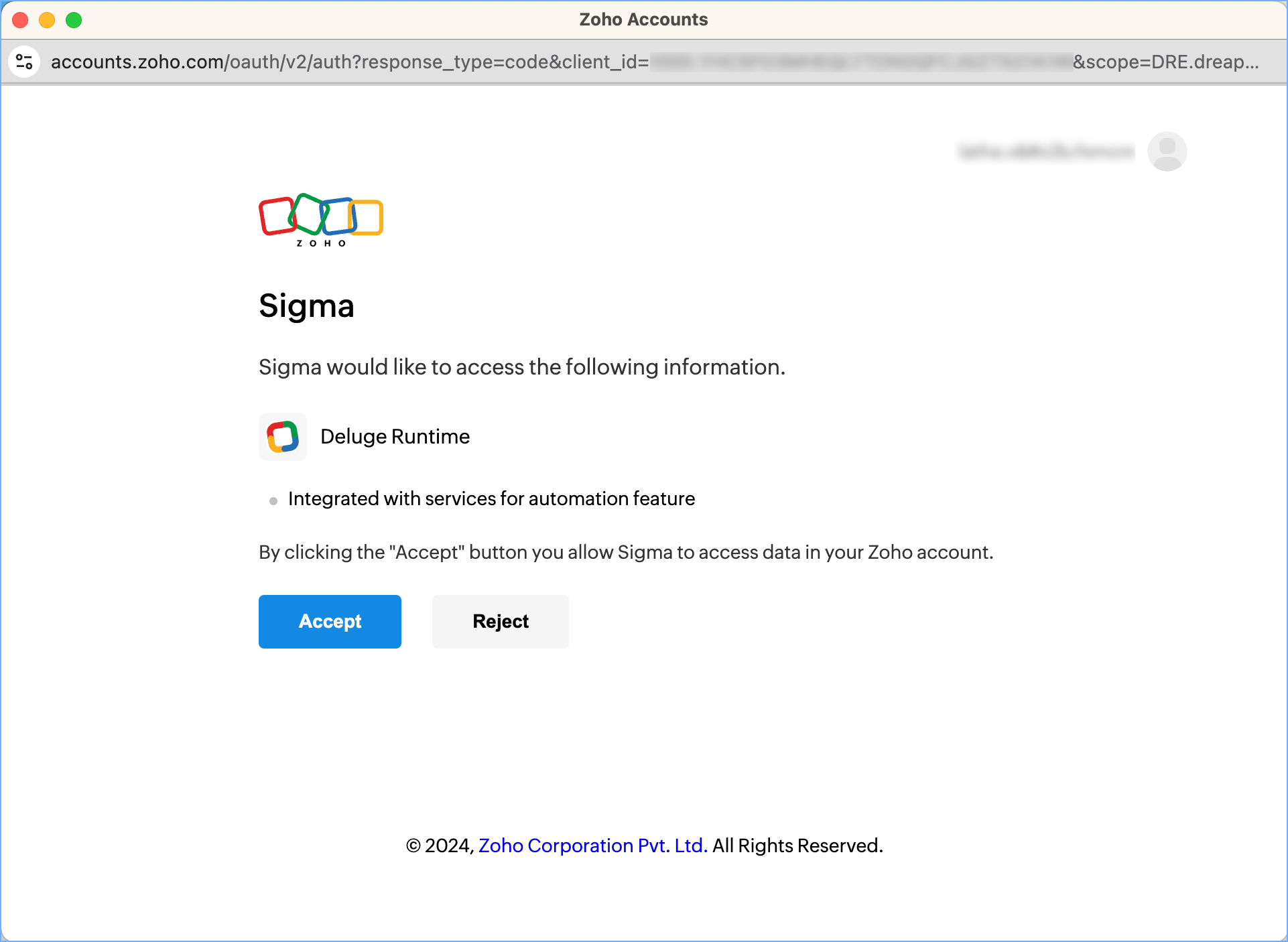 - Click Accept to allow Sigma to access the required information.