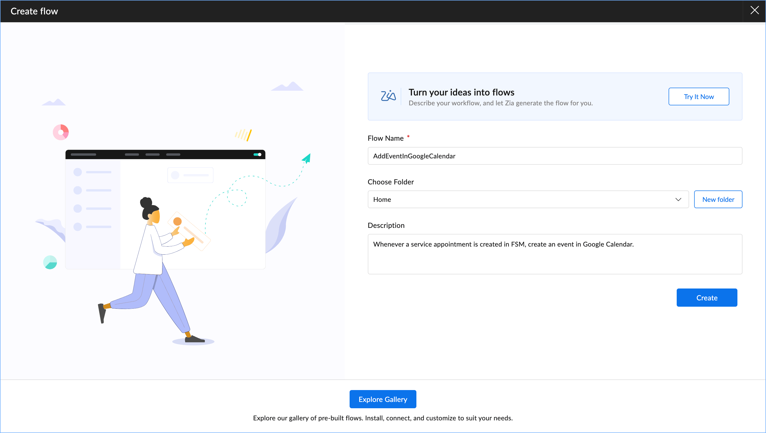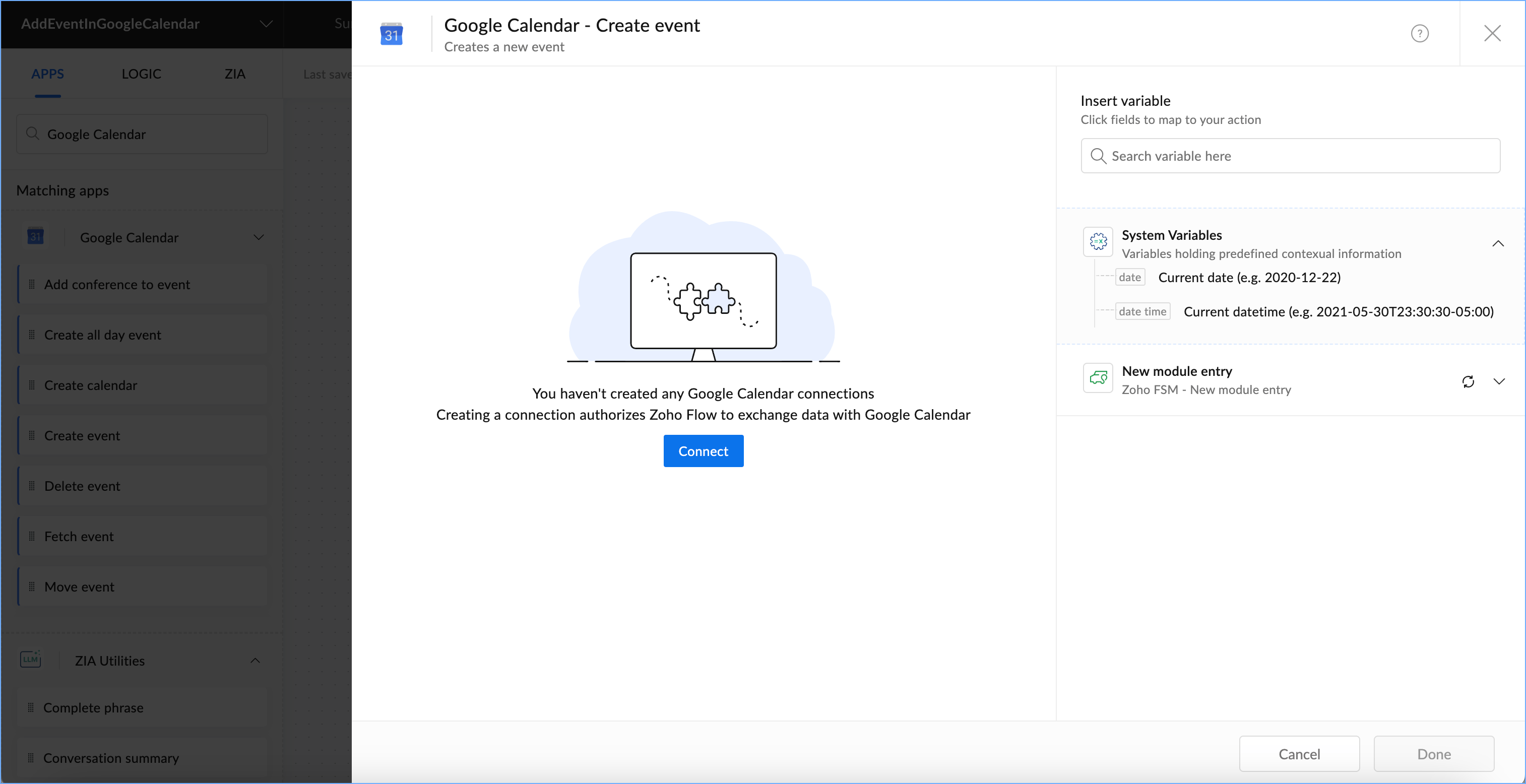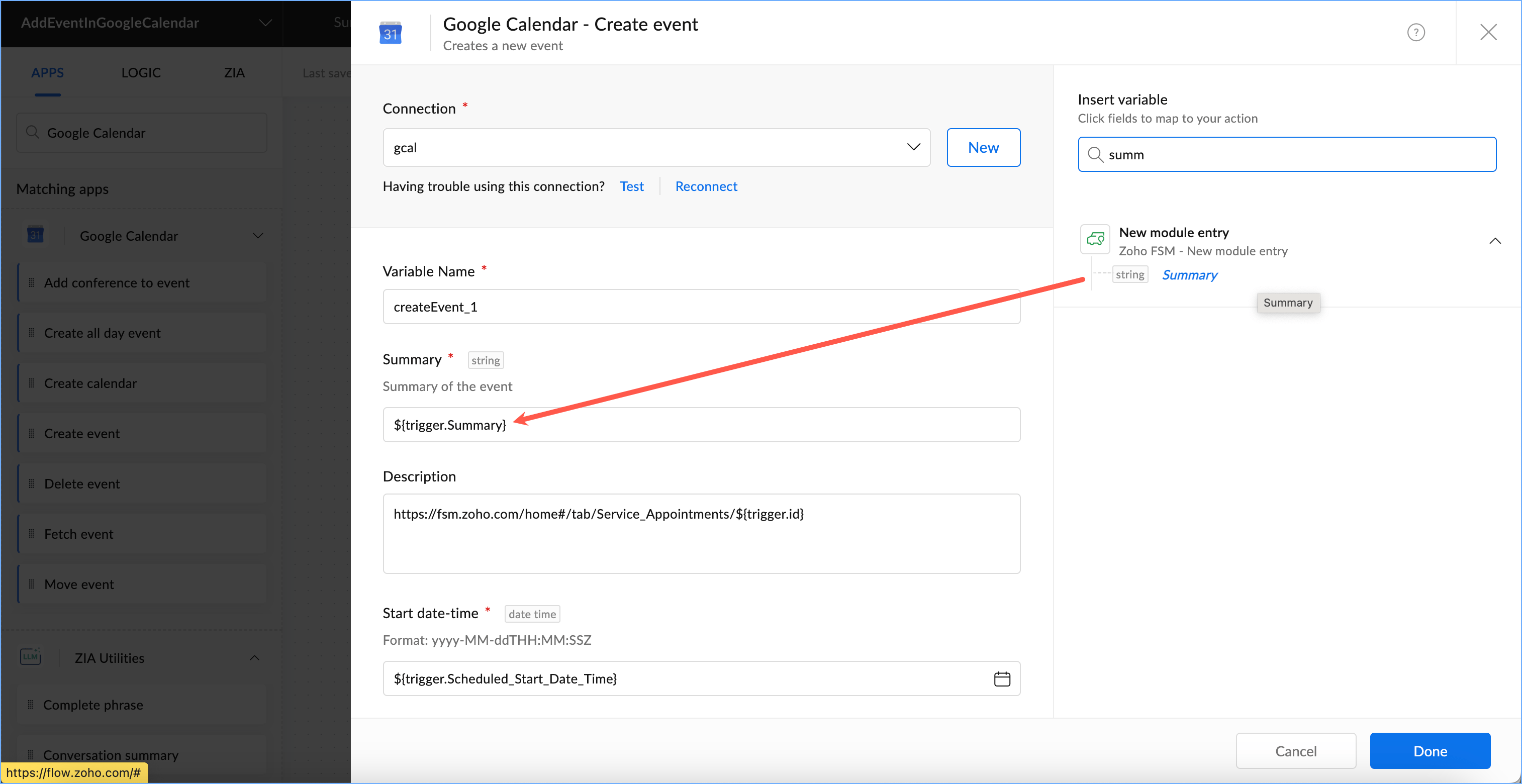 1. Create Google Calendar events for Zoho FSM Service Appointments.