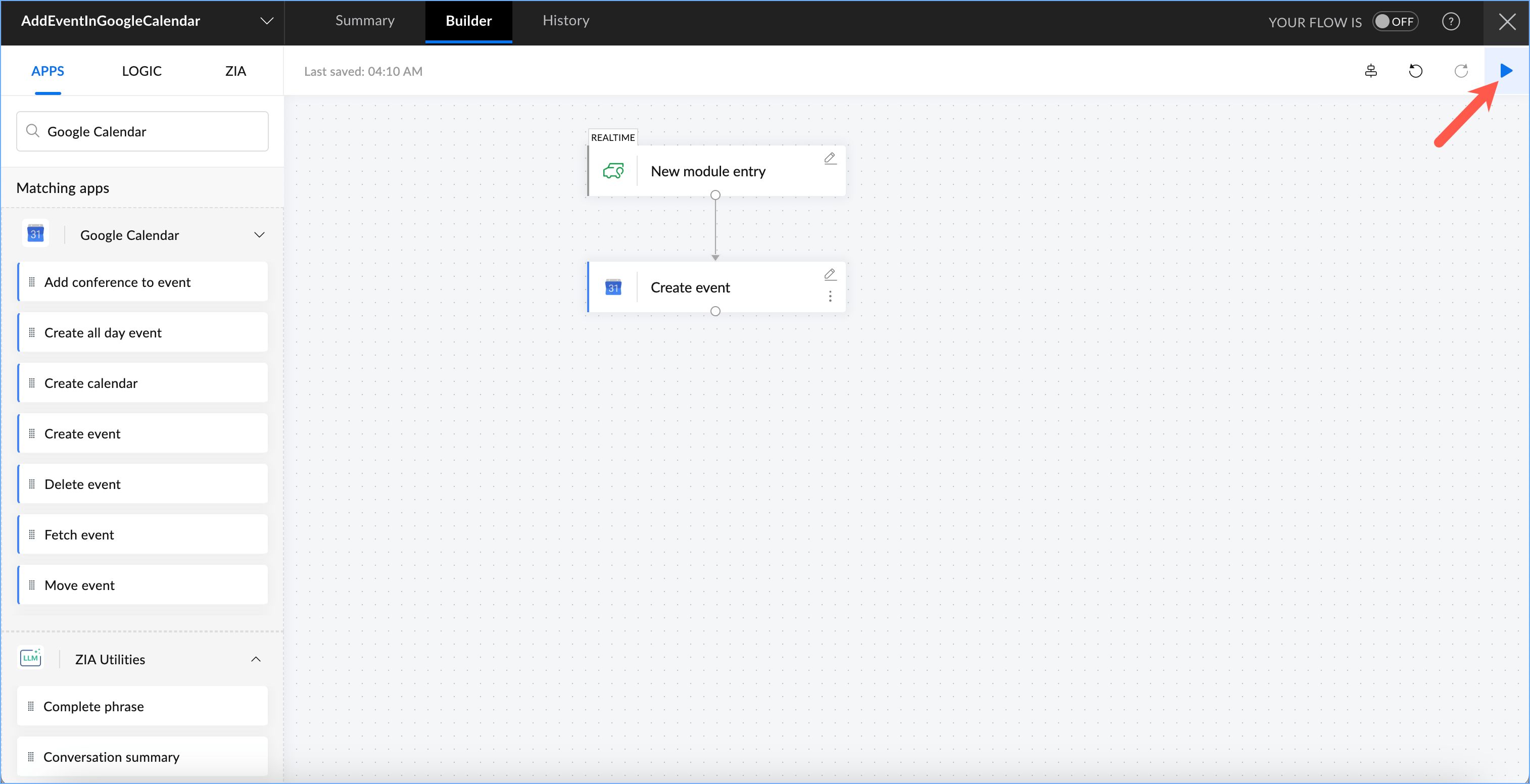To explain the steps, we will be using the example: create an event in Google Calendar for a Service Appointment